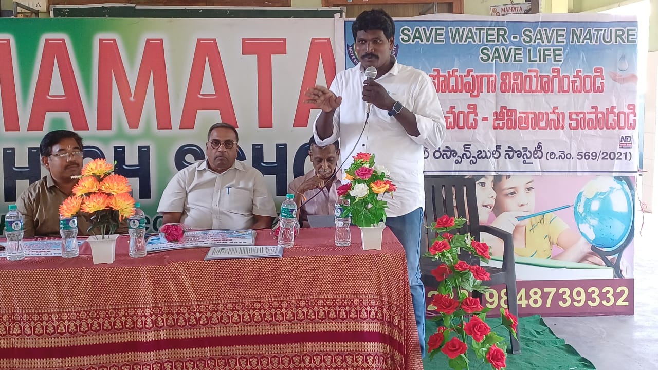 నీటి పొదుపు మరియు పర్యావరణ పరిరక్షణపై విద్యార్థులకు అవగాహన కార్యక్రమం నిర్వహించి… భవిష్యత్తులో నీటి కొరత ఏర్పడే అవకాశం ఉన్నందున నీటిని పొదుపుగా వినియోగించుకోవాలని, పర్యావరణ పరిరక్షణకు మొక్కలు నాటడం, ప్లాస్టిక్ వినియోగం తగ్గించడం వంటి కార్యక్రమాలు విద్యార్థి దశ నుండే మొదలుకావాలని వివరించడం జరిగింది. ఈ అవగాహనా కార్యక్రమంలో… మమత ఇంగ్లీష్ మీడియం హై స్కూల్ ప్రిన్సిపల్ నాగేశ్వరరావు గారు, మన ఊరు మన బాధ్యత స్వచ్ఛంద సేవా సంస్థ అధ్యక్షులు కొండేపూడి శంకర్రావు గారు, ఆర్ఎస్ఎస్ రామచంద్రరావు గారు, పాఠశాల ఉపాధ్యాయిని ఉపాధ్యాయులు విద్యార్థులు పాల్గొన్నారు. ప్రపంచ జల దినోత్సవం సందర్భంగా… మైక్ అనౌన్స్మెంట్ ఆటో ద్వారా పిఠాపురం పట్టణంలోని పలు ప్రాంతాలలో ప్లకార్డుల ద్వారా అవగాహన కార్యక్రమం నిర్వహించడం జరిగింది.