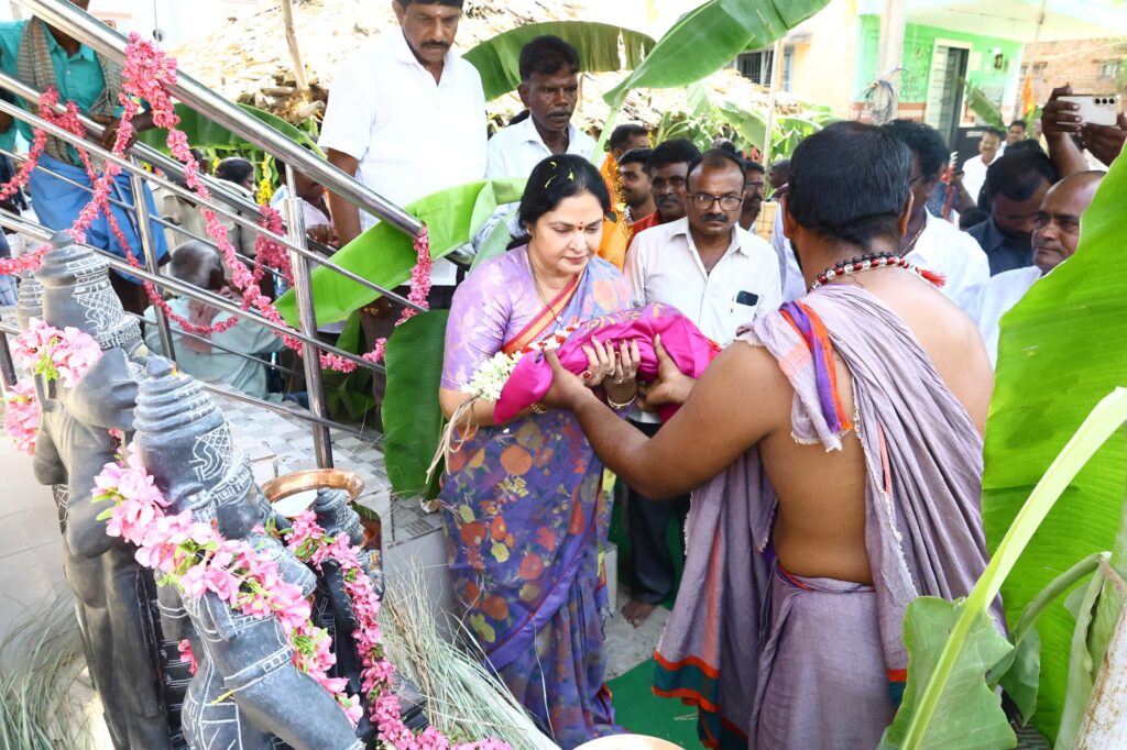 మన న్యూస్ ,కోవూరు ,మే 9:– చెన్నకేశవ స్వామి వారి అనుగ్రహంతో నిడుముసలి గ్రామం పాడి పంటలతో సుభిక్షంగా వుండాలని ఆకాంక్షించారు కోవూరు ఎమ్మెల్యే వేమిరెడ్డి ప్రశాంతి రెడ్డి . ఇందుకూరుపేట మండలం నిడుముసలి గ్రామంలో శ్రీ శ్రీదేవి భూదేవి చెన్నకేశ్వర స్వామి ఆలయ విగ్రహ ప్రతిష్ట మరియు కుంభాభిషేకం కార్యక్రమంలో ఆమె ముఖ్య అతిధిగా పాల్గొన్న ఎమ్మెల్యే ప్రశాంతి రెడ్డి కి గ్రామస్థులు అపూర్వ స్వాగతం పలికారు. ఈ సందర్భంగా ఆలయ అర్చకులు ప్రత్యేక పూజలు చేసి ఎమ్మెల్యే ప్రశాంతి రెడ్డి కి ఆశీర్వచనాలు అందచేశారు. తిరుమల తిరుపతి దేవస్థానం ఆర్ధిక సహాయంతో నిర్మించిన ఆలయ ప్రతిష కార్యక్రమంలో పాల్గొనడం చాలా సంతోషంగా ఉందన్నారు. ఈ పవిత్ర కార్యక్రమంలో భాగస్వామురాలిని చేసిన నిడుముసలి వాసులకు ఆమె ధన్యవాదాలు తెలిపారు. నిడుముసలి శ్రీదేవి భూదేవి చెన్నకేశ్వర స్వామి ఆలయం భవిష్యత్ తరాలకు పవిత్ర ఆధ్యాత్మిక క్షేత్రంగా విరాజిల్లాలని ఎమ్మెల్యే ప్రశాంతి రెడ్డి గారు ఆకాంక్షించారు. చెన్నకేశవస్వామి ఆశీస్సులతో నిడుముసలి వాసులు ఆయురారోగ్యాలతో వర్ధిల్లాలని కోరారు. ఈ కార్యక్రమంలో నిడుముసలి సర్పంచ్ దువ్వూరు పావని రెడ్డి టిడిపి నాయకులు చెంచుకిషోర్ యాదవ్, బెజవాడ వంశీకృష్ణా రెడ్డి, కోడూరు కమలాకర్ రెడ్డి స్థానిక నాయకులు మధుసూదన రెడ్డి, చైర్మన సుధాకర్ రెడ్డి, చైర్మన సురేష్ రెడ్డి, వినీల్ రెడ్డ తదితరులు పాల్గొన్నారు.
