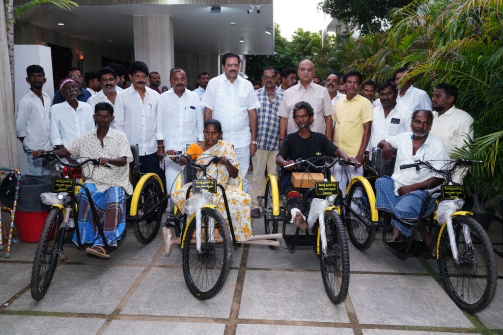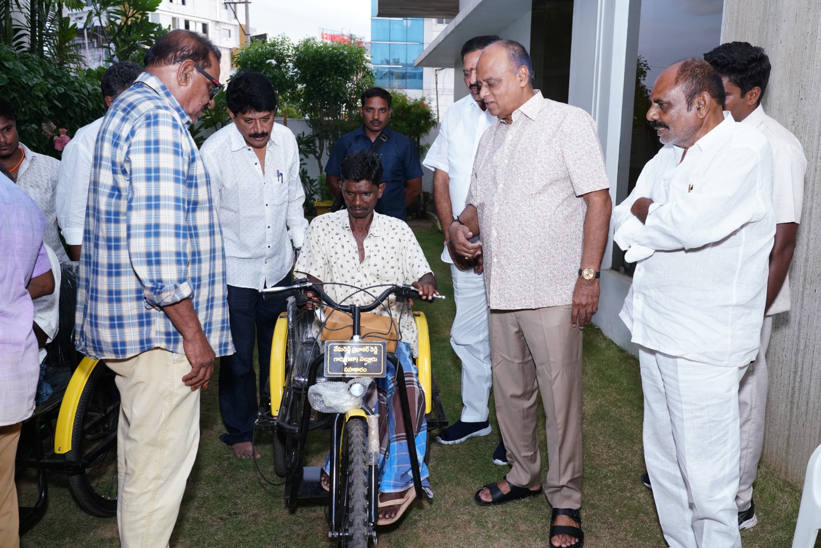 మన న్యూస్, నెల్లూరు:నెల్లూరు జిల్లా వ్యాప్తంగా వందలాదిమంది దివ్యాంగులను ఆదుకుంటున్న ఎంపీ వేమిరెడ్డి ప్రభాకర్‌రెడ్డి ఆదివారం నెల్లూరులోని ఆయన నివాసంలో నలుగురు దివ్యాంగులకు ట్రై సైకిళ్లు అందచేశారు. నడవలేక అవస్థలు పడే ప్రతి ఒక్క దివ్యాంగుడికి ట్రై సైకిల్ అందచేయడం విపిఆర్ ఫౌండేషన్ లక్ష్యమన్నారు. కొడవలూరు మండలం యల్లాయపాలెంకు చెందిన చెంచయ్య, ముదివర్తికి చెందిన కోటయ్య, ఇందుకూరుపేట మండలం డేవిస్పేట కు చెందిన మనోహర్, అనుమసముద్రం మండలం సోమశిలకు చెందిన కామేశ్వరి నెల్లూరు మాగుంట లేఅవుట్ లోని విపిఆర్‌ నివాసంలో ఎంపి వేమిరెడ్డి ప్రభాకర్ రెడ్డి చేతుల మీదుగా ఎలక్ట్రిక్‌ ట్రై సైకిళ్ళు అందుకున్నారు. ట్రై సైకిళ్ళు అందుకున్న దివ్యాంగులు ఎంపి వేమిరెడ్డి దాతృత్వం పట్ల కృతజ్ఞతలు తెలియజేశారు. ఈ కార్యక్రమంలో ఏపీ ఆగ్రో ఇండస్ట్రీ డెవలప్మెంట్ కార్పొరేషన్ చైర్మన్ మాలేపాటి సుబ్బానాయుడు, ఇతర ముఖ్యులు తదితరులు పాల్గొన్నారు.
