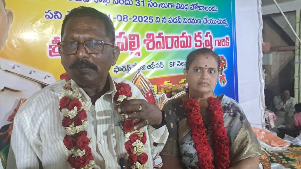 మన ధ్యాస ,నెల్లూరు, ఆగస్టు 31: ప్రభుత్వ అటవీశాఖ ఫారెస్ట్ రేంజ్ ఆఫీసర్ గా వృత్తి నిర్వహణలో విశిష్ట సేవలు అందించి, ప్రభుత్వ అవార్డులు ,ప్రశంసలు పొంది , నిజాయితీపరుడుగా, మంచి మనిషిగా అందరి మన్ననలు పొంది 31 ఆగస్టు 2025 పదవి విరమణ చేస్తున్న కొండపల్లి శివరామకృష్ణ శేష జీవితం సుఖసంతోషాలతో, ఆయురారోగ్యాలతో కొనసాగాలని వచ్చిన అతిథులు మాట్లాడారు. కొండపల్లి శివరామ కృష్ణ 1995 కావలి, అటవీ శాఖలో సెక్షన్ ఆఫీసర్ గా ఉద్యోగం ప్రారంభించి, 31 సంవత్సరాలు వివిధ హోదాల్లో పనిచేసి ఫారెస్ట్ రేంజ్ ఆఫీసర్ గా నేడు పదవి విరమణ చేయుచున్నారు.కొండపల్లి శివరామకృష్ణ మాట్లాడుతూ……. నా 31 సంవత్సరాలు ఉద్యోగ నిర్వహణలో నాకు సహకరించిన తోటి ఉద్యోగులకు, పై అధికారులకు, బంధుమిత్రులకు శ్రేయోభిలాషులకు అందరికీ నా కృతజ్ఞతలు అని తెలియజేశారు. ఈ పదవి విరమణ సభకు విచ్చేసిన అటవీ శాఖ ఉద్యోగులకు, మిత్రులకు, శ్రేయోభిలాషులకు ధన్యవాదాలు తెలిపారు. అనంతరం కొండపల్లి శివరామకృష్ణను అటవీ శాఖ ఉద్యోగులు శాలువాలతో ఘనంగా సత్కరించారు.