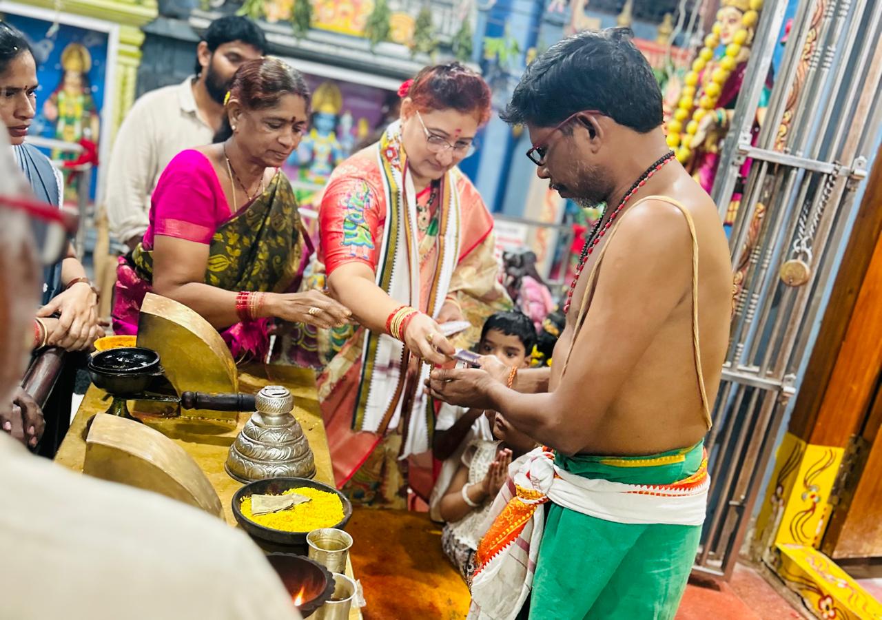 శంఖవరం మన ధ్యాస ప్రతినిధి (అపురూప్): దేవీ నవరాత్రులను పురస్కరించుకుని కాకినాడ జిల్లా లయన్స్ క్లబ్ ఛైర్పర్సన్ పర్వత జానకి దేవి అమ్మవారికీ పట్టు వస్త్రాలు సమర్పించారు. కాకినాడ జిల్లా ప్రత్తిపాడు నియోజకవర్గం రౌతులపూడి మండలం రౌతులపూడి లో శ్రీ శ్రీనివాస వర్తక సంఘం, ఆధ్వర్యంలో దుర్గాదేవి కమిటీ సభ్యుల దేవీ నవరాత్రుల మహోత్సవములు అంగరంగ వైభవంగా నిర్వహిస్తున్నారు. ఈ సందర్భంగా కాకినాడ జిల్లా లయన్స్ క్లబ్ ఛైర్పర్సన్ పర్వత జానకి దేవి అమ్మవారిని దర్శించుకుని ప్రత్యేక పూజలు గావించారు. ముందుగా ఆలయ కమిటీ సభ్యులు ఘనంగా స్వాగతం పలికి అనంతరం శాలువాతో సత్కరించారు. ప్రత్తిపాడు నియోజకవర్గ ప్రజలు సుఖ శాంతులతో సుభిక్షంగా ఉండాలని కోరుకున్నట్లు పర్వత జానకి దేవి తెలిపారు. ఈ కార్యక్రమంలో పర్వత జానకి దేవి రాజబాబు అభిమానులు లైన్స్ క్లబ్ సభ్యులు పాల్గొన్నారు.