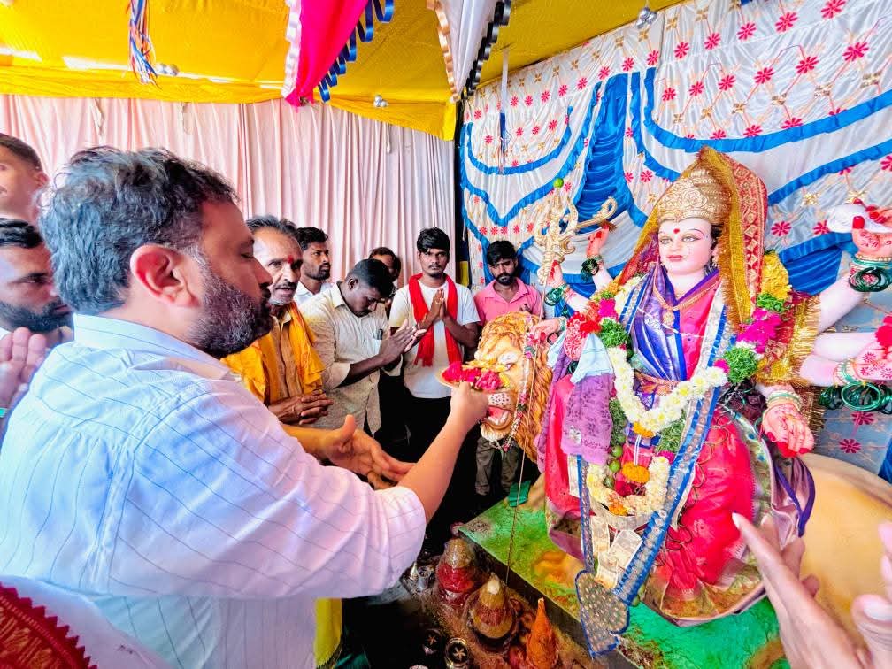 ఈ సందర్భంగా ఎమ్మెల్యే మాట్లాడుతూ -అమ్మవారి ఆశీస్సులతో జుక్కల్ నియోజకవర్గ ప్రజలు సుఖసంతోషాలతో ఆరోగ్యంగా జీవించాలని,రైతులు మంచి పంటలు పండించుకొని అభివృద్ధి సాధించాలని కోరుకున్నాను.దేవి దుర్గామాత భక్తులకు శక్తి,ధైర్యం ప్రసాదిస్తుంది.నవరాత్రి ఉత్సవాలు మన సంస్కృతికి ప్రతీక,ఇవి ప్రజలలో ఐకమత్యం,సాంస్కృతిక విలువలను పెంపొందిస్తాయి అని అన్నారు.అలాగే, ప్రభుత్వం ప్రజల అభ్యున్నతికి కృషి చేస్తుందని,అభివృద్ధి కార్యక్రమాల్లో ఎప్పుడూ ముందుండి ప్రజలకు మరింత సేవలు అందిస్తామని ఎమ్మెల్యే స్పష్టం చేశారు. అనంతరం యూత్ సభ్యులు జుక్కల్ ఎమ్మెల్యే తోట లక్ష్మి కాంతారావుకు శాలువా పూలమాలతో ఘనంగా సత్కరించారు.ఈ కార్యక్రమంలో నిజాంసాగర్ మండల కాంగ్రెస్ అధ్యక్షుడు మల్లికార్జున్, మహమ్మద్ నగర్ మండల కాంగ్రెస్ అధ్యక్షుడు రవీందర్ రెడ్డి, సొసైటీ వైస్ చైర్మన్ నర్సింలు, యువజన యూత్ అధ్యక్షులు మల్లయ్య గారి ఆకాష్ ,నాయకులు సాయి పటేల్, నాగభూషణం గౌడ్,ఖాళీక్, ఇఫ్తేకార్,గంగి రమేష్,కాశయ్య,హరిన్,తోట రాజు, యూత్ అధ్యక్షులు సంతోష్ రాథోడ్, తదితరులు ఉన్నారు.