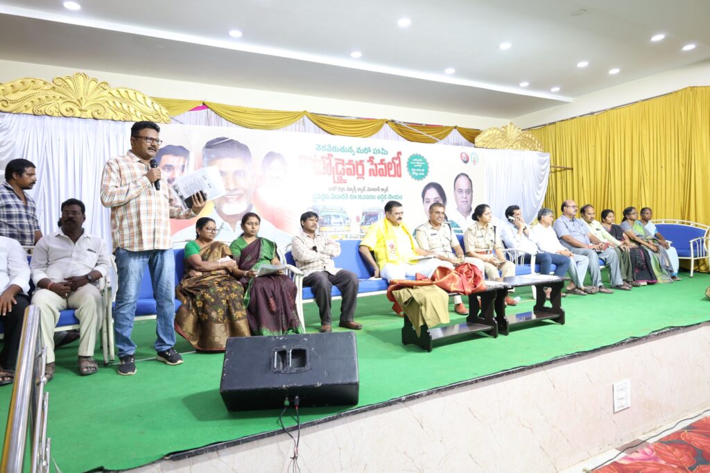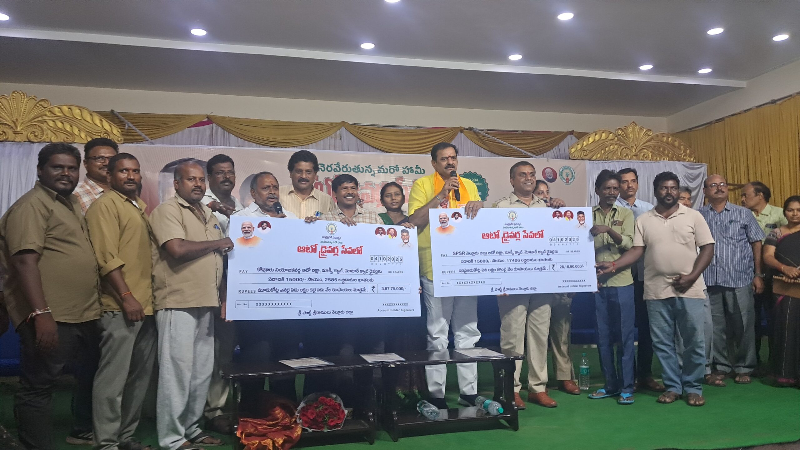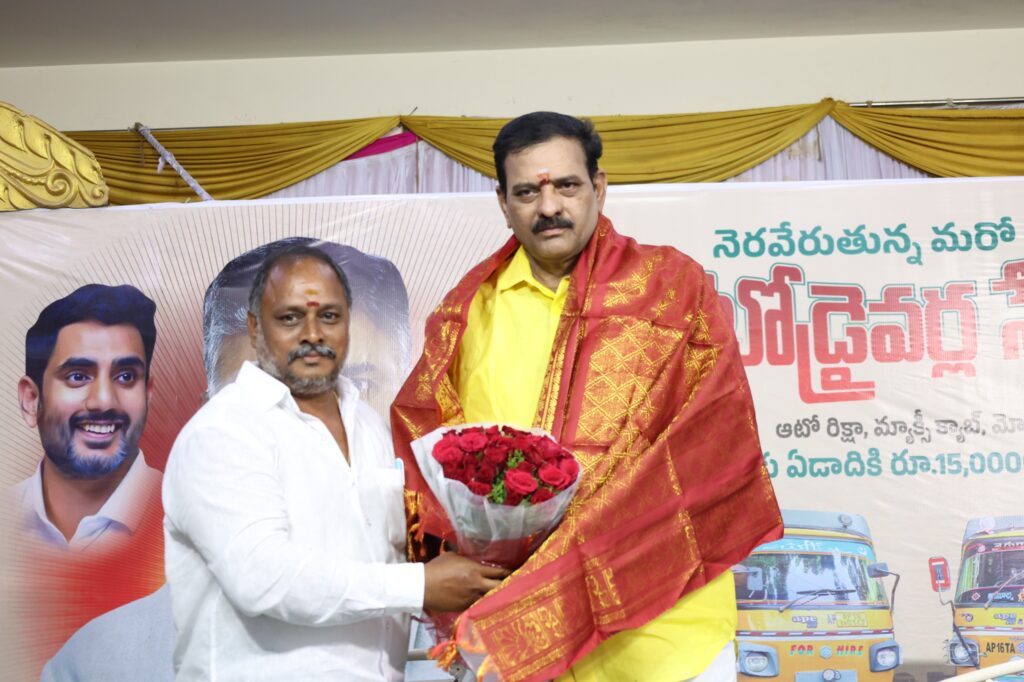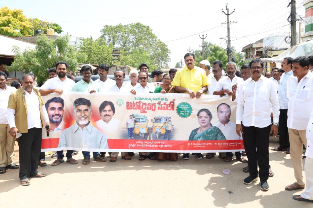 *కోవూరులో ఆటో డ్రైవర్ల భారీ ర్యాలీ. మన ధ్యాస , కోవూరు,అక్టోబర్ 4:డ్రైవర్ల సేవలో పధకంలో భాగంగా రాష్ట్ర వ్యాప్తంగా 2 లక్షల 90 వేల 669 మంది డ్రైవర్లకు ఆర్ధిక సహాయం అందించి కూటమి ప్రభుత్వం పక్షపాతి అని ప్రక్షపాత ప్రభుత్వమని సిఎం చంద్రబాబు నాయుడు నిరూపించారన్నారు ఎపి ఆగ్రోస్ ఛైర్మెన్ మాలేపాటి సుబ్బా నాయుడు . ఎమ్మెల్యే వేమిరెడ్డి ప్రశాంతి రెడ్డి ఆదేశాలతో శనివారం కోవూరు కెవిఎస్ కళ్యాణ మండపంలో నిర్వహించిన ఆటో డ్రైవర్ల సేవలో కార్యక్రమంలో ఆయన ముఖ్య అతిధిగా పాల్గొన్నారు. ఈ సందర్భంగా కోవూరు గ్రామంలోని బజారు సెంటర్ నుంచి కెవిఎస్ కళ్యాణ మండపం వరకు ఆటో డ్రైవర్లు భారీ ర్యాలీ నిర్వహించారు. జై తెలుగుదేశం పార్తీ జై జై చంద్రబాబు నాయిడు, వర్ధిల్లాలి వేమిరెడ్డి ప్రశాంతి రెడ్డి నాయకత్వం అన్న నినాదాలతో ఆటో డ్రైవర్లు కోవూరు వీధుల్లో హోరెత్తించారు. అనంతరం పార్టీ ప్రతినిధిగా పాల్గొన్న ఎపి ఆగ్రోస్ ఛైర్మెన్ మాలేపాటి సుబ్బా నాయుడు మాట్లాడుతూ…… రాష్ట్ర వ్యాప్తంగా ఉన్న 2 లక్షల 90 వేల మంది ఆటో డ్రైవర్లకు 15 వేలు ఆర్థిక అందిస్తూ తలపెట్టిన ఆటో డ్రైవర్ల సేవలలో పధకం ఆటో డ్రైవర్లకు కూటమి ప్రభుత్వం యిచ్చిన దసరా కానుకగా అభివర్ణించారు. గత ప్రభుత్వంలో ఆటో డ్రైవర్లకు 260 కోట్లు ఖర్చు చేస్తే… కూటమి ప్రభుత్వం ఆటో సోదరులకు 435 కోట్లు ఆర్ధిక సహాయం అందించిందన్నారు.. అసంఘటిత రంగంలో ఉన్న ఆటో కార్మికుల కోసం కూటమి ప్రభుత్వం తీసుకున్న ఈ నిర్ణయం వారి కుటుటంబాల్లో ఆర్థికాభివృద్ధికి దోహదపడుతుందన్నారు. గత వైసీపీ ప్రభుత్వ హయాంలో ఆటో డ్రైవర్లు రోడ్డెక్కాలంటే భయపడాల్సిన పరిస్థి ఉండేదని గుంతల రోడ్లు, పోలీసుల కేసులతో ఆటో తిప్పాలంటేనే భయపడే పరిస్థితి వుండేదన్నారు. గత ప్రభుత్వంలో ఆటో డ్రైవర్లకు10 వేలు మాత్రమే యిస్తే కూటమి ప్రభుత్వం 15 వేలు యిచ్చి పేదలకు అండగా నిలుస్తుందన్నారు. కూటమి ప్రభుత్వం అందజేసే 15 వేల ఆర్థిక సహాయంతో డ్రైవర్లు తమ వాహనాల రిపేర్లు, మెయింటెనెన్స్, కుటుంబ అవసరాలు ఆసరాగా ఉంటుందన్నారు. ప్రతిరోజూ వేలాది మంది ప్రయాణికులను సురక్షితంగా గమ్యస్థానాలకు చేర్చే ఆటో సోదరులకు ఆర్థిక చేయూత ఇవ్వాలనే సంకల్పంతో ప్రభుత్వం గౌవర భృతి అందజేస్తుందన్నారు. అనంతరం రవాణా శాఖ అధికారి మాట్లాడుతూ కోవూరు మండలంలో 773 విడవలూరు మండలంలో 257, కొడవలూరు మండలంలో 456 ఇందుకూరు పేట మండలంలో 613 బుచ్చి రూరల్ మరియు అర్బన్ మండలాలలో 696 కోవూరు నియోజకవర్గంలోని ఐదు మండలాలలో 2 వేల 795 మందికి లబ్ది చేకూరిందన్నారు. కూటమి ప్రభుత్వం అధికారంలోనికి వచ్చాకదాదాపు కోట్లతో రోడ్లను మరమ్మతు చేసి ప్రయాణాన్ని సులభం చేసిందని పాత వాహనాలపై ఉన్న గ్రీన్ ట్యాక్స్ను 20 వేల నుంచి 3 వేలకు తగ్గించి డ్రైవర్లకు ఉపశమనం క