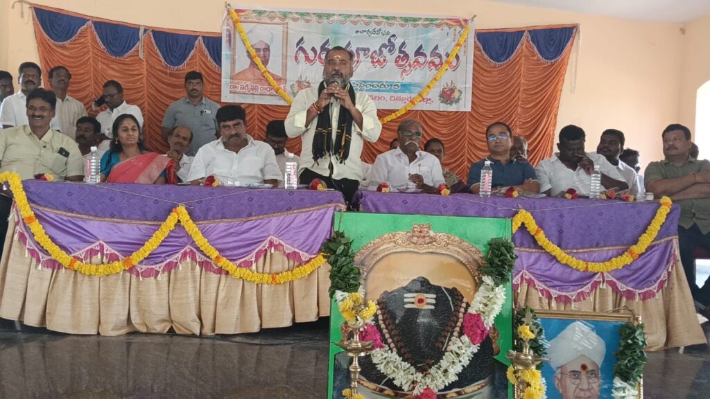 తవణంపల్లి మండల కేంద్రంతవణంపల్లి మండలంలోని జడ్పీ ఉన్నత పాఠశాలలో ఆదివారం జాతీయ ఉపాధ్యాయ దినోత్సవం జరిగింది సందర్భంగా రిటైర్డ్ టీచర్స్ కి ఘనంగా సత్కరించారు ఈ కార్యక్రమానికి ముఖ్య అతిథులుగా స్థానిక శాసనసభ్యులు డాక్టర్ కలికిరి మురళీమోహన్ ముఖ్యఅతిథిగా పాల్గొని జ్యోతి వెలిగించి ప్రారంభించారు సర్వేపల్లి రాధాకృష్ణను చిత్రపటానికి పూలమాలు వేసి నివాళులర్పించారు ఉపాధ్యాయులకు సన్మానం చేశారు. అనంతరం ఎమ్మెల్యే మాట్లాడుతూ గురువులను కనిపించే దేవుడుగా అభివర్ణించారు. ఉపాధ్యాయులు ఎల్లప్పుడూ విద్యార్థుల క్షేమం కోరుకుంటారని వారి విజయం చూసి ఉపాధ్యాయులు సంతోషపడతారని ఉపాధ్యాయులను గౌరవిస్తేనే విద్యార్థులు వివిధ రంగాల్లో రాణిస్తారని వారి మధ్య అనుబంధం బలపడుతుందని గురువులను గౌరవించడం అంటే కేవలం వారికి నమస్కారం అని చెప్పి వదిలివేయమని అర్థం కాదు. విద్య అంటే ఒక సాగు వంటిది పంటలు పండించడానికి రైతు ఎంత శ్రమ పడతాడో శిష్యునికి జ్ఞానం అందించే క్రమంలో గురువు కూడా అంతే తాపత్రయ పడతాడని కొనియాడారు. ఈ కార్యక్రమంలో మండల అధ్యక్షులు వెంకటేశ్వర చౌదరి మార్కెట్ కమిటీ చైర్మన్ భాస్కర్ నాయుడు మాజీ అధ్యక్షులు గాలి దిలీప్ మహిళా అధ్యక్షులు చిట్టెమ్మ ఎంఈఓ హేమలత, మోహన్ రెడ్డి, త్యాగరాజు రెడ్డి ప్రవీణ్ కుమార్, రంజిత్ రెడ్డి, గోపి, రఘు టిడిపి నాయకులు ఉపాధ్యాయులు పాల్గొన్నారు