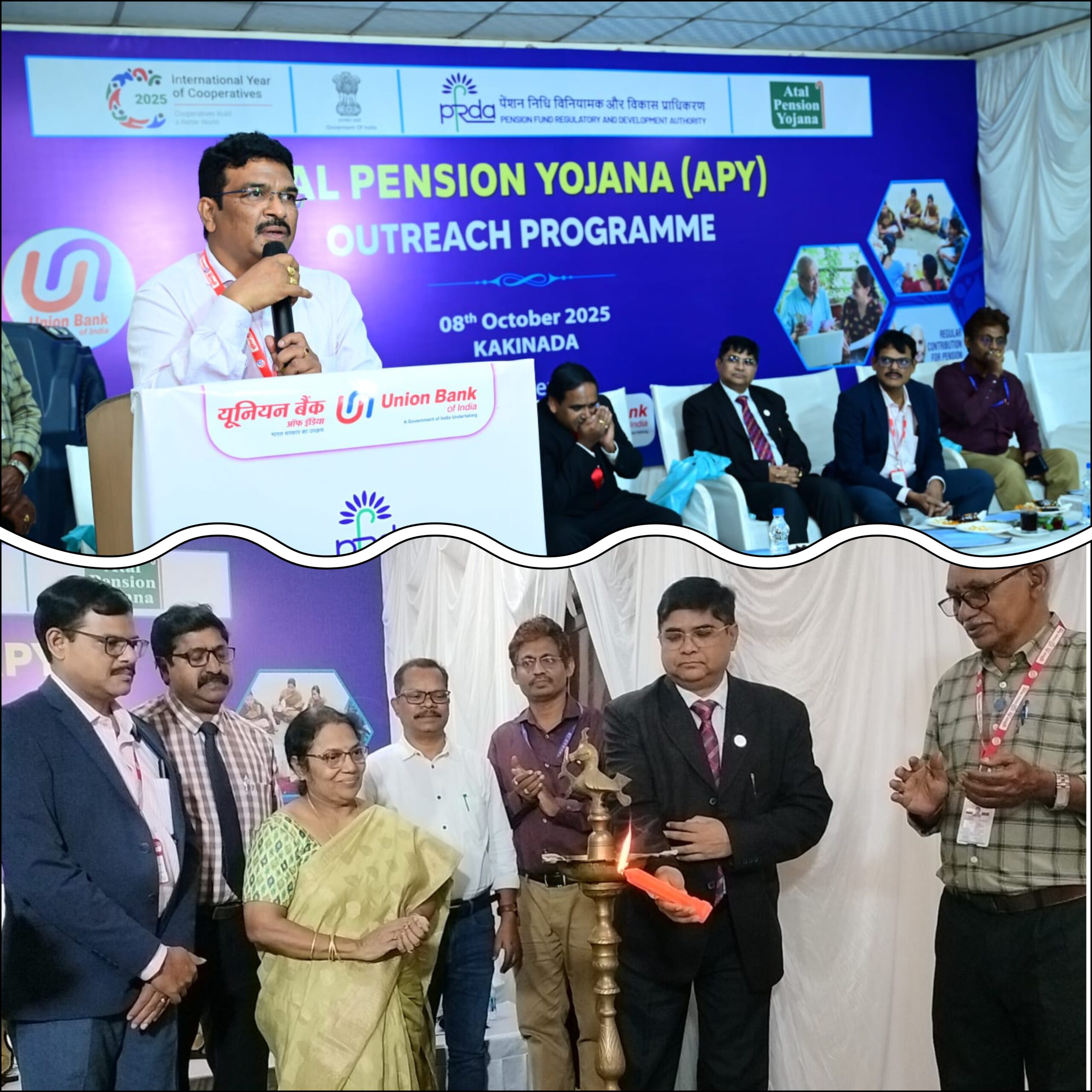 శంఖవరం/కాకినాడ మన ధ్యాస ప్రతినిధి (అపురూప్): సామాన్య మద్య తరగతి ప్రజానీకానికి రిటైర్మెంట్ తరువాత ఆర్థిక భద్రతను కల్పించడమే అటల్ పెన్షన్ యోజన పథకం ప్రధాన ఉద్దేశమని ఎస్.ఎల్.బి.సి. ఎ.జి.ఎం. శ్రీనివాస్ పేర్కొన్నారు. కాకినాడ సర్పవరం జంక్షన్ వద్ద గల జయ స్పందన ఫంక్షన్ హాల్లో లీడ్ బ్యాంక్ ఆధ్వర్యంలో అటల్ పెన్షన్ యోజనపై అవగాహన కార్యక్రమం మంగళవారం ఘనంగా జరిగింది.ఈ కార్యక్రమానికి ఎల్.డి.ఎం. సి.హెచ్.ఎస్.వి. ప్రసాద్ అధ్యక్షత వహించగా, పి.ఎఫ్.ఆర్.డి.ఎ. సి.జి.ఎం. పరవేష్ కుమార్ ముఖ్య అతిధిగా, ఎస్.ఎల్.బి.సి. ఎ.జి.ఎం. శ్రీనివాస్ విశిష్ట అతిధిగా పాల్గొన్నారు. డి.ఐ.సి. జి.ఎం. గణపతి, డి.ఆర్.డి.ఒ. పి.డి. శ్రీనివాసరావు, మెప్మా పి.డి. ప్రియంవధ, నాబార్డ్ ఎ.జి.ఎం. సోమినాయుడు, యూనియన్ బ్యాంక్ ఆఫ్ ఇండియా ఆర్.ఎం. బి.జి.ఆర్. నాయుడు, ఎస్.బి.ఐ. ఆర్.ఎం. కృష్ణ, ఎ.పి.జి.బి. ఆర్.ఎం. శ్రీనివాసరావు గౌరవ అతిధులుగా పాల్గొన్నారు.కార్యక్రమం ప్రారంభంలో అతిధులు జ్యోతి ప్రజ్వలన చేసి పూజా కార్యక్రమం నిర్వహించి కార్యక్రమాన్ని ప్రారంబించారు. ఈ సందర్భంగా ఎస్.ఎల్.బి.సి. ఎ.జి.ఎం. శ్రీనివాస్ మాట్లాడుతూ మధ్య తరగతి ప్రజలు తమ రిటైర్మెంట్ తరువాత భద్రత కోసం తప్పనిసరిగా అటల్ పెన్షన్ యోజనలో చేరాలని సూచించారు. చిన్న మొత్తాలుగా సేవింగ్స్ చేయడం ద్వారా వృద్ధాప్యంలో నెలవారీ పెన్షన్ పొందే అవకాశం ఈ పథకం ద్వారా లభిస్తుందని తెలిపారు.పి.ఎఫ్.ఆర్.డి.ఎ. సి.జి.ఎం. పరవేష్ కుమార్ మాట్లాడుతూ దేశ ఆర్థిక వ్యవస్థలో సామాన్య ప్రజల పొదుపులు కీలకమని, ప్రతి వ్యక్తి తన భవిష్యత్తు భద్రత కోసం ఈ పథకాన్ని వినియోగించుకోవాలని సూచించారు. బ్యాంకులు మరియు బిజినెస్ కారస్పాండెంట్లు గ్రామీణ ప్రజల్లో చైతన్యం కల్పించి ఈ పథకాన్ని ప్రతి ఇంటికి చేరవేయాలని ఆయన కోరారు.మెప్మా పి.డి. ప్రియంవధ మాట్లాడుతూ మహిళలు, స్వయంసహాయక సంఘాల ద్వారా అటల్ పెన్షన్ యోజన ప్రాధాన్యాన్ని ప్రచారం చేయడం ద్వారా గ్రామీణ మహిళల్లో భవిష్యత్ భద్రతపై అవగాహన పెంపొందించవచ్చని తెలిపారు. ఈ పథకం ద్వారా మహిళలు తమ కుటుంబాలకు ఆర్థిక రక్షణ కల్పించగలరని అన్నారు. ఎల్.డి.ఎం. సి.హెచ్.ఎస్.వి. ప్రసాద్ మాట్లాడుతూ ఈ కార్యక్రమం ద్వారా కాకినాడ జిల్లా వ్యాప్తంగా పథకం లబ్ధిదారుల సంఖ్యను పెంచే లక్ష్యంతో చైతన్య కార్యక్రమాలు చేపడుతున్నామని తెలిపారు. అటల్ పెన్షన్ యోజనలో చేరిన ప్రతి ఒక్కరూ భవిష్యత్తులో ఆర్థికంగా స్వయం సమృద్ధి సాధించగలరని అన్నారు.కార్యక్రమం ముగిసిన అనంతరం అతిథులను సాలువాలు కప్పి, పుష్పగుచ్ఛాలు, జ్ఞాపికలు బహుకరించి సత్కరించారు. కార్యక్రమంలో బ్యాంక్ అధికారులు, బిజినెస్ కారస్పాండెంట్లు, నాబార్డ్, మెప్మా, డి.ఆర్.డి.ఒ., డి.ఐ.సి. ప్రతినిధులు పాల్గొన్నారు. ఈ సందర్భం