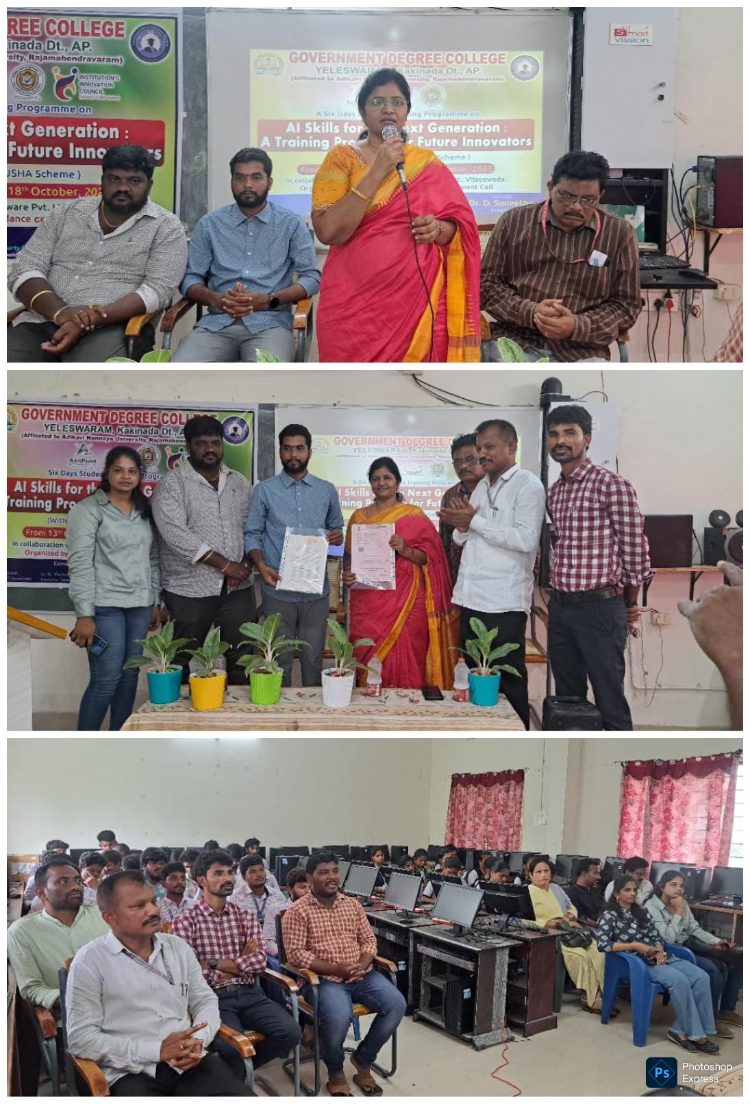 మన ధ్యాస ప్రతినిథి ఏలేశ్వరం దుర్గా శ్రీనివాస్:ప్రభుత్వ డిగ్రీ కళాశాల ఏలేశ్వరం నందు సోమవారం కృత్రిమ మేధస్సు పై విద్యార్ధులకు 6 రోజుల శిక్షణ శిభిరాన్ని కళాశాల ప్రిన్సిపల్ డా.డి.సునీత ప్రారంభించారు. తరువాత విద్యార్ధులను ఉద్దేశించి మాట్లాడుతూ నేటి తరం మరియు రాబోయే కాలమంత కృత్రిమ మేధస్సు పై ఆధారపడి జీవిస్తారని, కృత్రిమ మేధస్సు అనేక ప్రయోజనాలను అందిస్తుందని పునరావృతమయ్యే పనులను ఆటోమేట్ చేయడం,ఉత్పాదకతను పెంచడం,ఇది విద్య నుండి వైద్యం, వ్యాపారం మరియు వ్యవసాయం వరకు ప్రతి రంగాన్ని ప్రభావితం చేస్తుందని సేవలు మరియు ఉత్పత్తులను వ్యక్తిగతీకరించడానికి సహాయపడుతుంది.ఎ1యొక్క ప్రాముఖ్యత రోజువారీ జీవితంలో కూడా కనిపిస్తుందని,స్మార్ట్ఫోన్ అన్లాకింగ్ ,మానవులకు ప్రమాదకరమైన పనులను ద్వారా నిర్వహించవచ్చునని, ముఖాన్ని గుర్తించడం వంటి ఫీచర్ల ద్వారా మన రోజువారీ జీవితంలో భాగంగా మారిందని, గతంలో పరిష్కరించలేని సంక్లిష్ట సమస్యలను పరిష్కరించగలదని, భారీ మొత్తంలో డేటాను త్వరగా విశ్లేషించడానికి సహాయపడుతుందని కాబట్టి కృత్రిమ మేధస్సు పై విద్యార్ధులందరు శిక్షణ పొంది ఉండాలనే ఉద్దేశ్యంతో ప్రధానమంత్రి ఉచ్చతర్ శిక్షణ అభియాన్ లో భాగంగా ఈ శిక్షణ శిభిరాన్ని ఏర్పాటు చేయడం జరిగిందని,విద్యార్డులను గ్రూప్లుగా విభజించి,40 మంది ఒక గ్రూప్ గా శిక్షణ పొందుతారని,ఈ శిక్షణ ఎక్షిస్ పాయింట్,సాఫ్ట్ వేర్ ప్రైవేట్ లిమిటెడ్ విజయవాడ,ఆంధ్ర ప్రదేశ్ వారిచే ఇవ్వబడుతుందని ఈ కార్యక్రమంలో ప్రధానంగా ఆర్టిఫిషియల్ ఇంటెలిజెన్స్,జెనెరేటివ్ ఆర్టిఫిషియల్ ఇంటెలిజెన్స్,క్వాంటమ్ కంప్యూటింగ్, సైబర్ సెక్యూరిటి,మిషన్ లెర్నింగ్,డేటా సైన్స్ ,ప్రామ్టు ఇంజనీరింగ్ మొదలైన అంశాలపై శిక్షణ ఇస్తారని తెలియజేశారు.ఈ శిక్షణ కార్యక్రమానికి కె.వెంకేటేశ్వర రావు,డా.ప్రయాగ మూర్తి ప్రగడ,కె.సురేశ్ కన్వెనెర్స్ గా ఎక్షిస్ పాయింట్ చెందిన శ్రావణి,యశశ్వి శిక్షకులుగా వ్యవహరిస్తారని తెలియజేశారు.