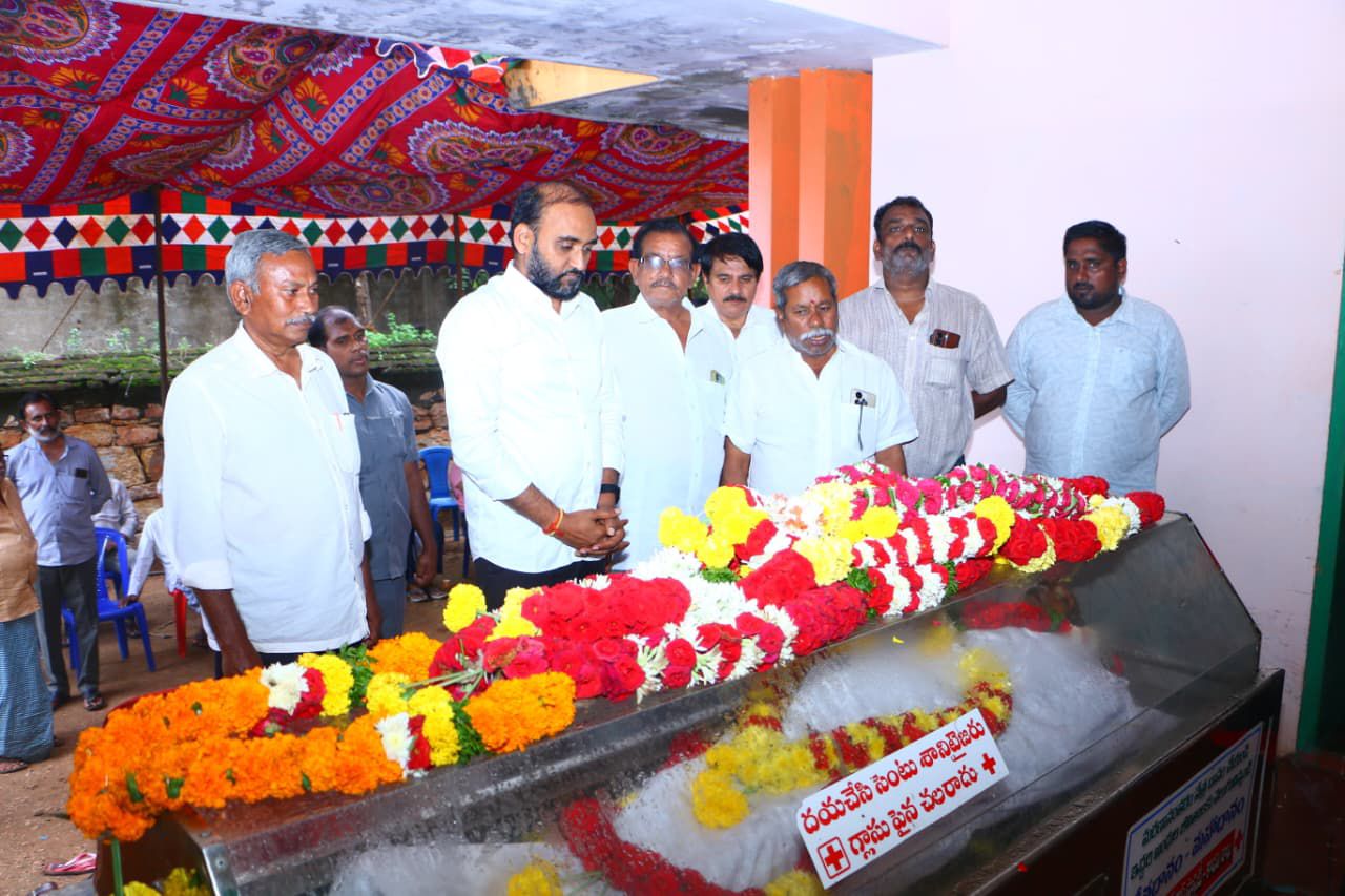 కలిగిరి మండలం సిద్దనకొండూరు గ్రామానికి చెందిన వర్ధినేని జయరామయ్య అకాల మరణం పట్ల ఉదయగిరి శాసనసభ్యులు కాకర్ల సురేష్ తన ప్రగాఢ సానుభూతి వ్యక్తం చేశారు. ముందుగా వర్ధినేని జయరామయ్య పార్థివదేహానికి కాకర్ల సురేష్ పూలమాల వేసి, నివాళులర్పించారు. అనంతరం కుటుంబ సభ్యులను పరామర్శించి, ఈ అకస్మాత్తు దుఃఖ ఘటనలో ధైర్యంగా ఉండాలని ఆత్మీయంగా ప్రోత్సహించారు. కుటుంబ సభ్యుల మనోభావాలను తెలుసుకుని వారికి పూర్తి మద్దతు ఉంటుందని హామీ ఇచ్చారు.ఈ కార్యక్రమంలో మండల నాయకులు, పార్టీ కార్యకర్తలు, గ్రామ పెద్దలు, బంధుమిత్రులు మరియు గ్రామ ప్రజలు పెద్ద సంఖ్యలో పాల్గొని జయరామయ్య గారికి నివాళులు అర్పించారు.
