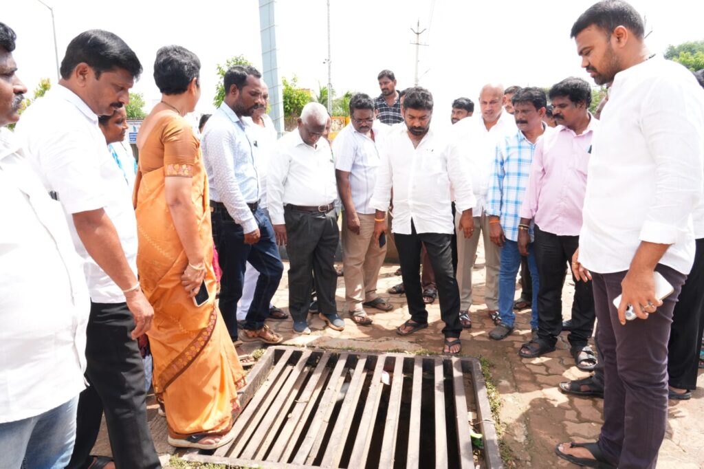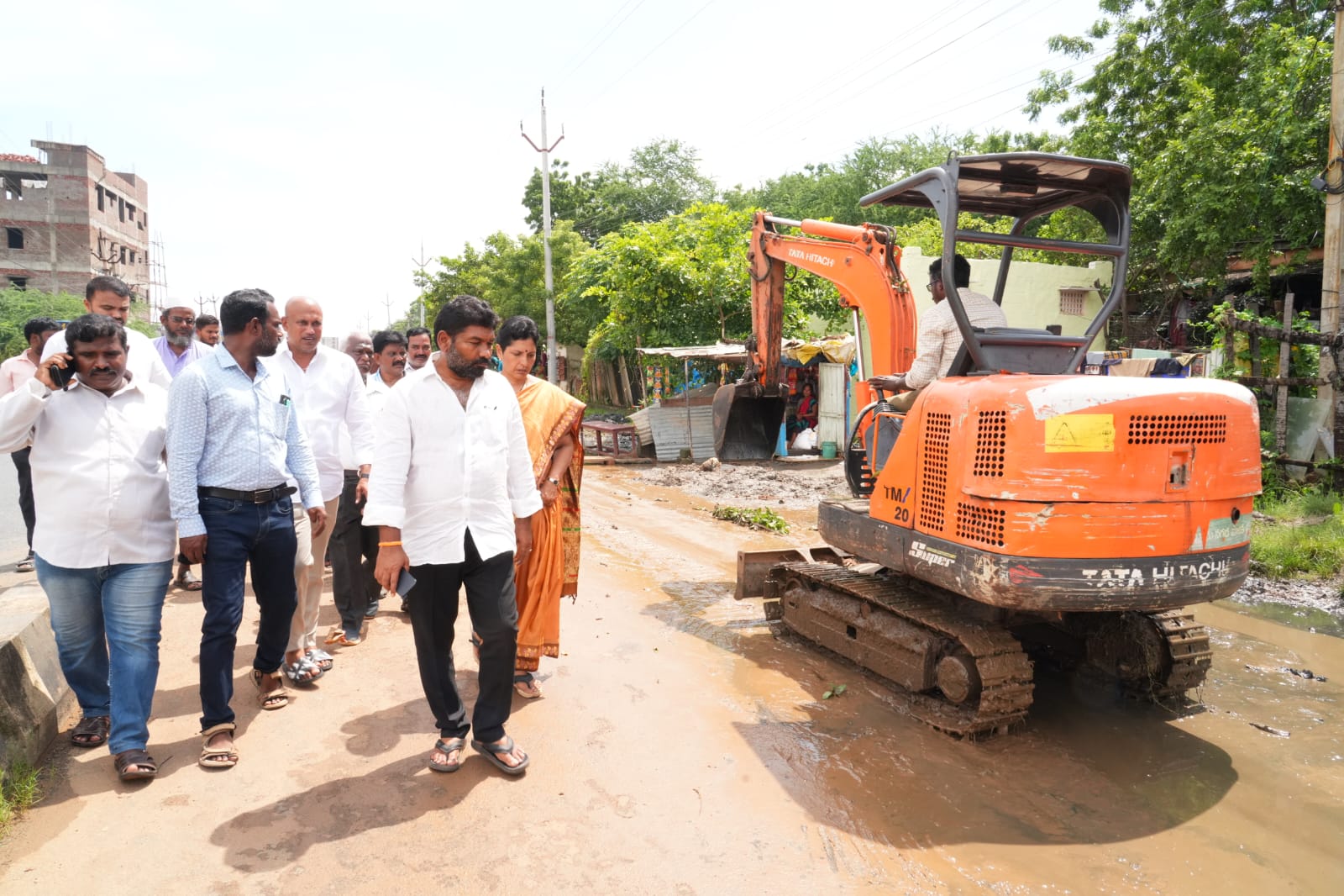 మన ధ్యాస,నెల్లూరు రూరల్ ,అక్టోబర్ 23 :భారీ వర్షాలు నేపథ్యంలో గురువారం ఉదయం నెల్లూరు రూరల్ నియోజకవర్గం నెల్లూరు నుండి పొట్టేపాళెం కు వెళ్లే ప్రధాన రహదారి పై వర్షపు నీరు నిలవకుండా శాశ్వత పరిష్కార చర్యలు తీసుకునేందుకు నెల్లూరు రూరల్ మండల ఎం.పీ.డీ.ఓ., మున్సిపల్ కార్పొరేషన్ మరియు ఆర్ & బి అధికారులతో కలసి పనులను పరిశీలించిన టిడిపి నాయకులు కోటంరెడ్డి గిరిధర్ రెడ్డి. నెల్లూరు శ్రీ ఇరుకళల పరమేశ్వరి అమ్మ దేవస్థానం నుండి పొట్టేపాలెం మీదుగా వెళ్లే ప్రధాన రహదారిపై ఇటీవల కురిసిన వర్షానికి నిలిచి ఉన్న వర్షపు నీరును త్వరితగతిన తొలగించేందుకు చర్యలు చేపట్టవలసిందిగా అధికారులకు సూచించిన టిడిపి నాయకులు కోటంరెడ్డి గిరిధర్ రెడ్డి. ఈ సమస్య శాశ్వత పరిష్కారం దిశగా చేపట్టవలసిన చర్యలకు ప్రణాళికలు సిద్ధం చేయవలసిందిగా అధికారులను సూచించిన టిడిపి నాయకులు కోటంరెడ్డి గిరిధర్ రెడ్డి.పై కార్యక్రమంలో టిడిపి సీనియర్ నాయకులు ఇందుపూరు శ్రీనివాసులురెడ్డి, నగర మాజీ మేయర్ నందిమండలం భానుశ్రీ, టిడిపి నాయకులు ఇందుపూరు అచ్యుత్ రెడ్డి,నెల్లూరు రూరల్ ఎమ్మెల్యే కార్యాలయం ఇంచార్జ్ దాట్ల చక్రవర్ధన్ రెడ్డి, ఆర్ & బి డి.ఇ., మునిసిపల్ కార్పొరేషన్ ఇ.ఇ, డి.ఇ, ఏ.ఇ, పొట్టేపాళెం పంచాయత్ సెక్రటరీ, వి.ఆర్.ఓ., కో క్లస్టర్ విష్ణు ప్రియ, 41 వ డివిజన్ టిడిపి అధ్యక్షుడు ఉచ్చురు సురేష్,టిడిపి నాయకులు పూల సుబ్రమణ్యం, సుతారం సురేష్, శివశేషాద్రి, కమలాకర్, గఫోర్, ఫిరోజ్, అద్దంకి కృష్ణ, కెఫియన్ ప్రసాద్, వేణు తదితరులు పాల్గొన్నారు.