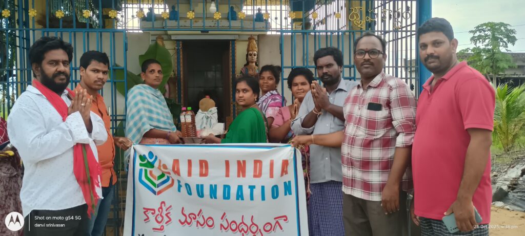 మన ధ్యాస,ఇందుకూరుపేట, అక్టోబర్ 26: కార్తీకమాసం సంధర్భంగా దేవాలయాలకు దీపధూప నైవేద్య సామాగ్రి కిట్ లు సమర్పణ చేసే కార్యక్రమం ఆదివారం “ధర్మసింధు ఆధ్యాత్మిక సేవాసమితి” ఆధ్వర్యంలో ఇందుకూరుపేట మండలంలోని కొమరిక, మైపాడు,నరసాపురం, రావూరు ఎస్సీ ఎస్టీ కాలనీల్లో ఆలయాలకు సమర్పణ చేయడం జరిగింది.ధర్మసింధు ఆధ్యాత్మిక సేవాసమితి కన్వీనర్ ధన్వి శ్రీనివాస్ మాట్లాడుతూ…… ఈ కార్యక్రమాన్ని గత పదేళ్లుగా నిర్విరామంగా నిర్వహిస్తున్నట్లు తెలిపారు. ఈ సంవత్సరం ఈ కార్యక్రమానికి ఎయిడ్ ఇండియా ఫౌండేషన్ సహకారంతో అందిస్తున్నట్లు పేర్కొన్నారు. ఈ పూజా సామాగ్రి కిట్ లో రెండు లీటర్లు స్వచ్ఛమైన నువ్వుల నూనె, రెండు అగరవత్తులు పాకెట్స్, 360 వత్తులు, కర్పూరం, గంధము, విభూతి,పసుపు కుంకుమలు, కలకండ మరియు ఆధ్యాత్మిక పుస్తక ప్రతులు అందిస్తున్నట్లు పేర్కొన్నారు. ఈ కార్యక్రమంలో గిరిజన యానాదుల సంక్షేమ సంఘం జిల్లా ప్రధాన కార్యదర్శి ఎందేటి సురేంద్ర, ఎస్ ఎస్ ఎఫ్ బాలవికాస కేంద్రం మాతాజీ మానస, ఎస్ ఎస్ ఎఫ్ కమిటీ సభ్యులు సరోజనమ్మ, పొట్లూరి నరేంద్ర తదితరులు పాల్గొన్నారు.