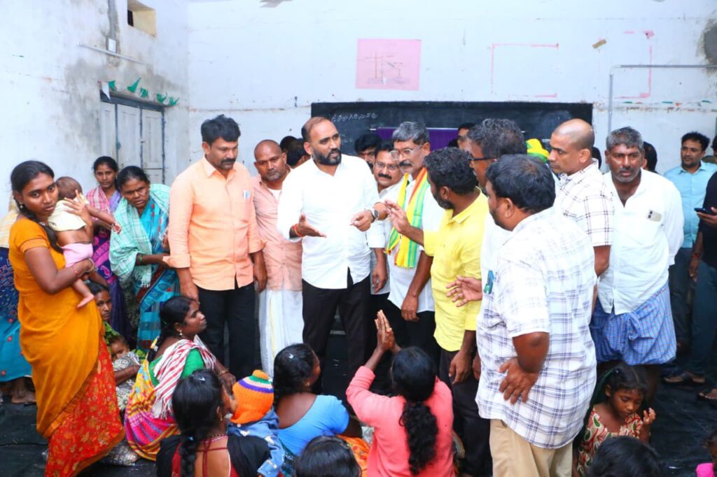 మొంథా తుఫాన్ ప్రభావంతో ఉదయగిరి నియోజకవర్గ పరిధిలోని పలు లోతట్టు ప్రాంతాలు తీవ్రమైన వర్షాలు, బలమైన ఈదురు గాలులు, తీవ్ర చలిగాలుల పరిస్థితుల్లో ప్రజలు ఎటువంటి ఇబ్బందులు పడకుండా ఉండేందుకు ఉదయగిరి నియోజకవర్గ శాసనసభ్యులు కాకర్ల సురేష్ ముందుకు వచ్చి, స్వయంగా వరద బాధిత ప్రాంతాలలో పర్యటించి పరిస్థితిని పరిశీలించారు. ఆయన ఉదయగిరి మండలంలోని బిజ్జంపల్లి గ్రామంలోని ఎస్సీ, ఎస్టీ కాలనీలో ఏర్పాటు చేసిన పునరావాస కేంద్రాలను సందర్శించి, అక్కడ తాత్కాలికంగా ఆశ్రయం పొందిన బాధిత కుటుంబాలతో మాట్లాడారు. వారి సమస్యలను ప్రత్యక్షంగా తెలుసుకొని, ప్రభుత్వ యంత్రాంగం వెంటనే అవసరమైన సదుపాయాలను కల్పించాలని ఆదేశించారు. చలి కారణంగా ఇబ్బంది పడుతున్న 50 కుటుంబాలకు పైగా తక్షణ సాయంగా ఆయన స్వయంగా దుప్పట్లు, పండ్లు, తినుబండారాలు, తాగునీటి బాటిళ్లు పంపిణీ చేశారు.ప్రజల సంక్షేమమే తన ప్రాధాన్యత అని పేర్కొన్న ఎమ్మెల్యే కాకర్ల సురేష్ గారు, తుఫాన్ ప్రభావిత ప్రాంతాల ప్రజలకు ప్రభుత్వం తరఫున అవసరమైన అన్ని రకాల సాయం అందించేలా చర్యలు కొనసాగుతాయని తెలిపారు. స్థానిక ప్రజలు ఎమ్మెల్యే ఈ సేవా కార్యక్రమాన్ని అభినందిస్తూ, తక్షణ స్పందనకు కృతజ్ఞతలు తెలిపారు.అలాగే ఆయన స్థానిక అధికారులు, గ్రామ సచివాలయ సిబ్బంది చలిని దృష్టిలో ఉంచుకుని పునరావాస కేంద్రాలలో తగిన వసతి, వైద్య సదుపాయాలు, నీరు, ఆహార పదార్థాలు నిరంతరం అందించాలంటూ సూచించారు.