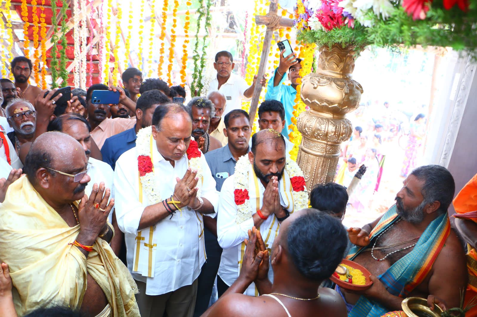 జలదంకి నవంబర్ 7 మన ధ్యాస న్యూస్ :-జలదంకి మండలం సోమవరప్పాడు గ్రామంలో విశేష భక్తిశ్రద్ధల మధ్య చేవూరి జనార్దన్ రెడ్డి – సులోచనమ్మ దంపతుల చేతుల మీదగా నిర్మించిన శ్రీ గంగా పార్వతి సమేత శ్రీ సోమనాథ స్వామి మరియు శ్రీ సాయిబాబా నూతన ఆలయ మహా ప్రతిష్ట మహోత్సవం ప్రముఖ పండితుల మంత్రోచ్ఛారణల మధ్య వేద ఘోషలతో ఘనంగా నిర్వహించబడింది.ఈ పవిత్ర సందర్భానికి పురస్కరించుకుని నెల్లూరు పార్లమెంట్ సభ్యులు వేమిరెడ్డి ప్రభాకర్ రెడ్డి , ఉదయగిరి శాసనసభ్యులు కాకర్ల సురేష్ ఈ దైవ కార్యములో పాల్గొన్నారు. అనంతరం స్వామి వారికి ప్రత్యేక పూజలు నిర్వహించి, తీర్థ ప్రసాదాలను స్వీకరించారు.ఈ సందర్భంగా వారు మాట్లాడుతూ, దేవాలయం నిర్మాణం గ్రామ అభివృద్ధికి, ఆధ్యాత్మిక వికాసానికి దోహదం చేస్తుందని పేర్కొన్నారు. గ్రామ ప్రజలు, భక్తులు, దాతలు సమిష్టిగా కృషి చేసి ఆలయ నిర్మాణం పూర్తి చేయడం పట్ల హర్షం వ్యక్తం చేశారు.ఈ కార్యక్రమంలో ప్రజా ప్రతినిధులు, రాజకీయ ప్రముఖులు, స్థానిక నాయకులు, భక్తులు, ప్రజలు తదితరులు పాల్గొన్నారు.