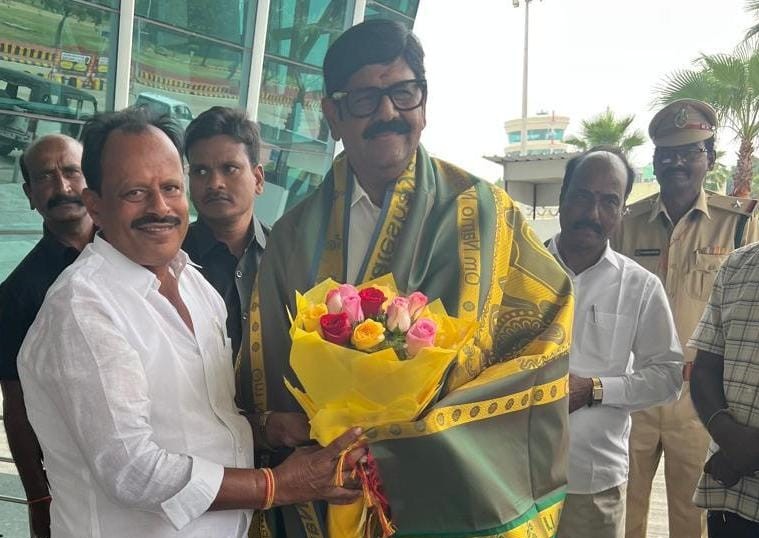 తిరుపతి, మన ధ్యాస, నవంబర్ 16 : రేణిగుంట విమానాశ్రయంలో ఆదివారం చిత్తూరు జిల్లా జనసేన పార్టీ సీనియర్ నాయకులు పోకల జనార్ధన్ రాష్ట్ర దేవాదాయ శాఖ మంత్రి ఆనం రామనారాయణ రెడ్డి కి ఘన స్వాగతం పలికారు. అనంతరం మంత్రి ఆనం రామనారాయణరెడ్డి నెల్లూరుకు బయలుదేరి వెళ్లారు. కూటమి ప్రభుత్వంలో భాగంగా జనసేన పార్టీ సీనియర్ నేత పోకల జనార్ధన్ తనకు దేవాదాయ శాఖ పరిధిలోని నామినేటెడ్ పదవులలో తనకు అవకాశం కల్పించాలని మంత్రిని కోరారు.