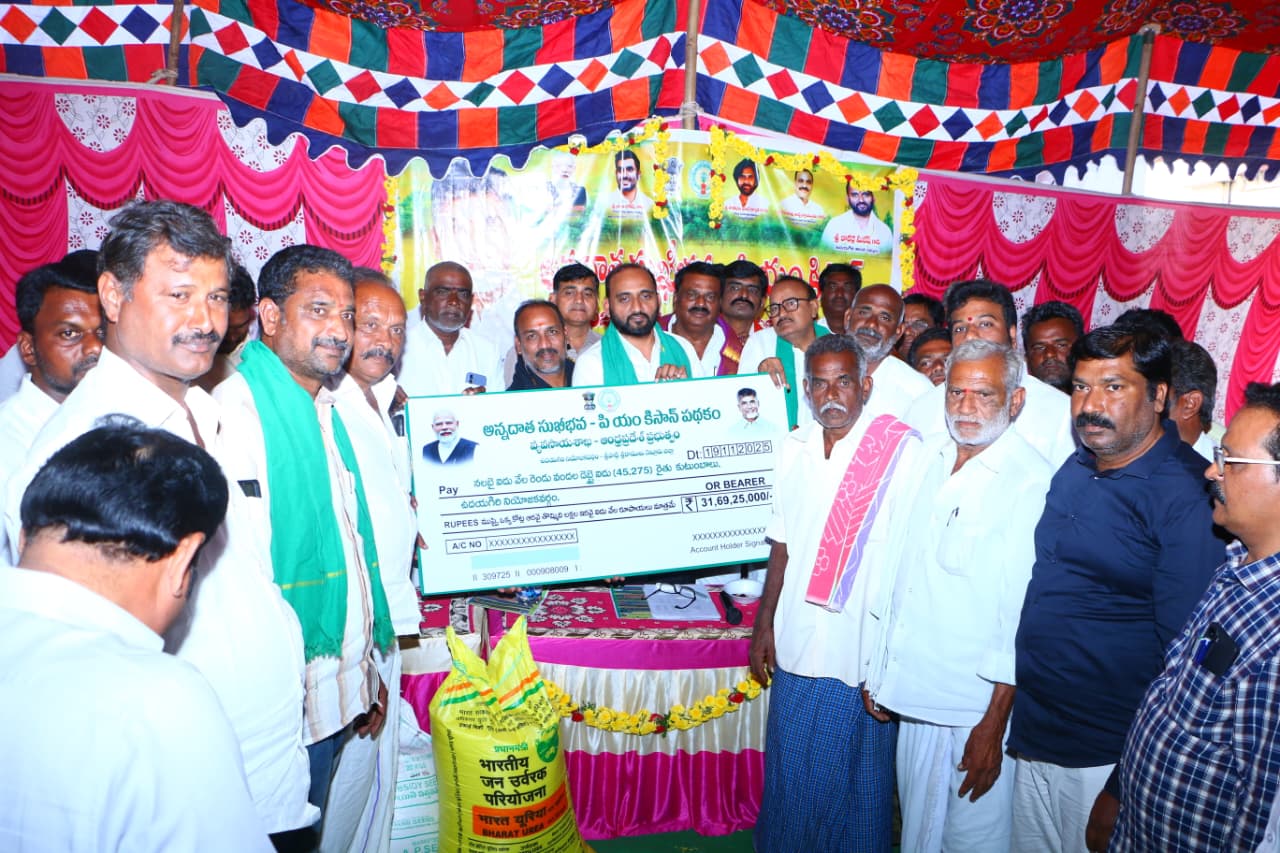 కలిగిరి మండలం వెలగపాడు పంచాయతీలో జరిగిన అన్నదాత సుఖీభవ – పీఎం కిసాన్ 2.0 రెండో విడత నిధుల పంపిణీ కార్యక్రమంలో ఉదయగిరి శాసనసభ్యులు కాకర్ల సురేష్ పాల్గొని రైతులకు చెక్కులను విడుదల చేశారు. రైతుల సంక్షేమాన్ని అత్యంత ప్రాధాన్యంగా తీసుకుంటున్న రాష్ట్ర ప్రభుత్వం, ముఖ్యమంత్రి నారా చంద్రబాబు నాయుడు మార్గదర్శకత్వంలో, అన్నదాత సుఖీభవ పథకం ద్వారా రెండు విడతల్లో కలిపి ₹6,310 కోట్లు నేరుగా రైతుల ఖాతాల్లో జమ చేయడం జరిగింది. ఈ నిధులు రైతులకు పంట సాగుకు, వ్యవసాయ ఖర్చులకు గొప్ప స్థాయి ఆర్థిక బలం అందిస్తున్నాయి.ఉదయగిరి నియోజకవర్గానికి మాత్రమే రెండో విడతలో 45,275 మంది రైతులకు ₹30.18 కోట్లు జమ చేయడం ద్వారా ప్రభుత్వం రైతుల పట్ల తన అంకితభావాన్ని మరోసారి చాటిచెప్పింది.అదేవిధంగా వ్యవసాయ పనులు నిరంతరంగా సాగేందుకు అవసరమైన విత్తనాలు, ఎరువులను కూడా విస్తృతంగా పంపిణీ చేసింది.అదేవిధంగా, ఉదయగిరి నియోజకవర్గ రైతులకు మొత్తం 976 క్వింటాళ్ల విత్తనాలు, 1161 మెట్రిక్ టన్నుల ఎరువులు అందజేయడం జరిగింది. పంట విత్తే సమయానికే విత్తనాలు, పంట పెరిగే దశలోనే ఎరువులు అందుబాటులో ఉండేలా ప్రభుత్వం ముందస్తు చర్యలు తీసుకోవడం రైతులపై ఉన్న నిజమైన శ్రద్ధను స్పష్టంగా వెల్లడిస్తోంది. రైతు అవసరాలన్నింటికీ అండగా నిలబడి, పంట ఉత్పత్తి నుండి ఆదాయ భద్రత వరకు ప్రతి దశలో సహాయం చేస్తూ, నిజమైన రైతు ప్రభుత్వంగా కూటమి ప్రభుత్వం పనిచేస్తుందనటంలో ఎలాంటి అతిశయోక్తి లేదు.ఈ కార్యక్రమంలో ప్రజా ప్రతినిధులు మండల నాయకులు స్థానిక నాయకులు కార్యకర్తలు కూటమి కుటుంబ సభ్యులు అధికారులు, ప్రజలు తదితరులు పాల్గొన్నారు.