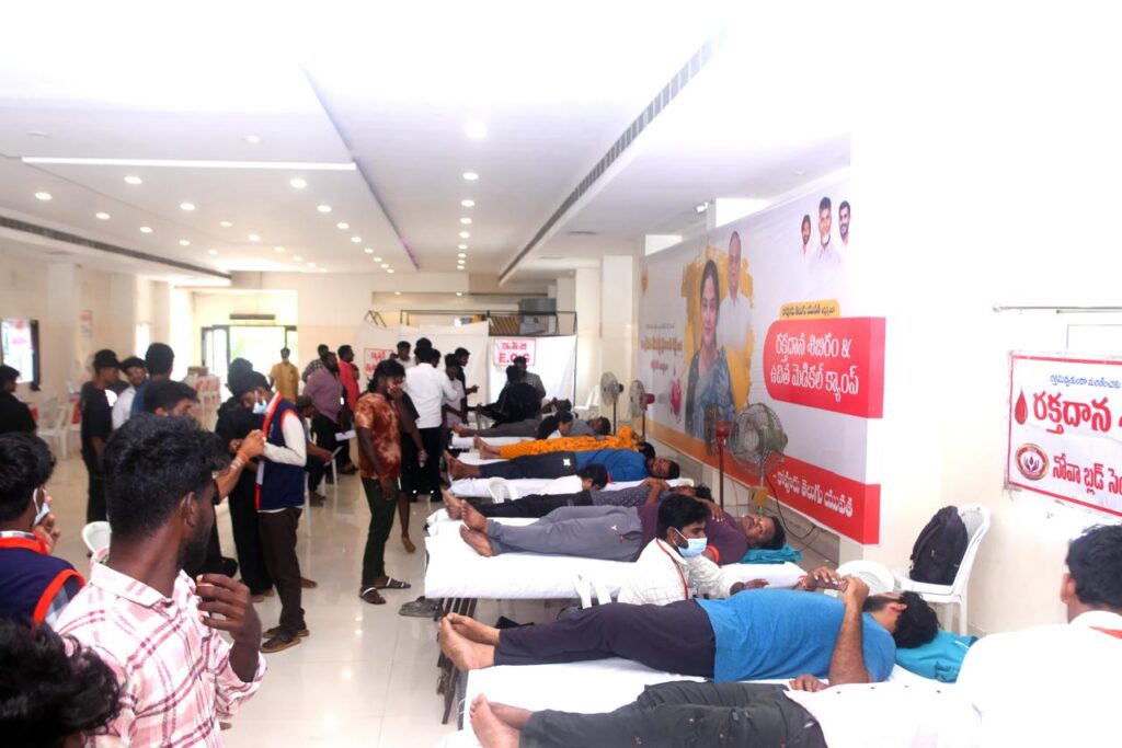 మన ధ్యాస ,కోవూరు, నవంబర్ 22:రక్తదానం..ప్రాణదానంతో సమానమని, ప్రతి ఒక్కరూ అపోహలు వీడి రక్తదానం చేయాలని తెలుగుయువత నాయకులు పేర్కొన్నారు. శనివారం కోవూరు ఎమ్మెల్యే వేమిరెడ్డి ప్రశాంతిరెడ్డి జన్మదినం సందర్భంగా తెలుగు యువత ఆధ్వర్యంలో పట్టణంలోని పీవీఆర్ కళ్యాణ మండపంలో పలు సేవా కార్యక్రమాలను నిర్వహించారు. మెడికవర్ ఆస్పత్రి వారి సౌజన్యంతో మహిళలకు ఉచిత క్యాన్సర్ స్క్రీనింగ్ పరీక్షలు, ఆరోగ్య పరీక్షలు, షుగర్, బీపీ, ఈసీజీ పరీక్షలను నిర్వహించారు. అలాగే రక్త పరీక్షలు సేకరించారు. ఉచితంగా మందులు అందజేశారు. అలాగే జయభారత్ ఆస్పత్రి వారి ఆధ్వర్యంలో ఉచితంగా కంటి పరీక్షలు నిర్వహించి, అవసరమైన వారికి మందులు అందించారు. అలాగే నోవా బ్లడ్ బ్యాంక్కు 162 మంది స్వచ్ఛందంగా ముందుకు వచ్చి రక్తదానం చేశారు. సుమారు 1000 మంది ప్రజలు ఈ సేవా కార్యక్రమాల్లో భాగస్వామ్యులయ్యారు. అలాగే ఉచిత వైద్య శిబిరానికి విచ్చేసిన ప్రజలకు ఉచిత అన్నదాన కార్యక్రమాన్ని నిర్వహించారు. తొలుత భారీ కేక్ కట్ చేసి అందరికీ పంచి పెట్టారు. ఈ కార్యక్రమంలో తెలుగు యువత నాయకులు, టీడీపీ నాయకులు, కార్యకర్తలు పాల్గొన్నారు.