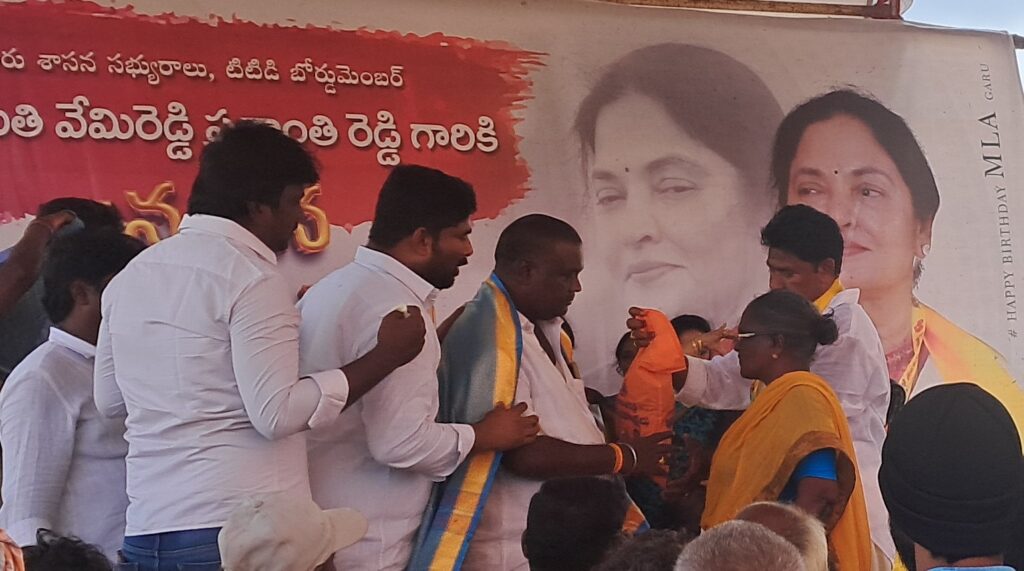 మన ధ్యాస ,బుచ్చిరెడ్డిపాలెం, నవంబర్ 22నెల్లూరు జిల్లా,బుచ్చిరెడ్డిపాలెం లో కోవూరు శాసనసభ్యులు వేమిరెడ్డి ప్రశాంతిరెడ్డి జన్మదినం సందర్భంగా శనివారం ఇంద్రప్రస్థ లేఔట్ లో సేవా కార్యక్రమాలు నిర్వహించారు. ఆమె పుట్టినరోజు సందర్భంగా స్థానిక నాయకులు, ప్రజా ప్రతినిధులు కలిసి తేజో డెవలపర్స్ సహకారంతో తెలుగుదేశం నాయకులు చింతం శ్రీనివాసులు రెడ్డి ఆధ్వర్యంలో ఇంద్రప్రస్థ లేఔట్ లో 100 కేజీల భారీ కేక్ కటింగ్ చేశారు. వెయ్యి మందికి దుప్పట్లు పంపిణీ చేసి అనంతరం అన్నదానం చేశారు. ఈ సందర్భంగా తేజో డెవలపర్స్ అధినేత శ్రీనివాసులు రెడ్డి మాట్లాడుతూ…… కోవూరు శాసనసభ్యు రాలు వేమిరెడ్డి ప్రశాంతిరెడ్డి మా ఇంద్రప్రస్థ లేఔట్ లో జన్మదిన వేడుకలు జరిగినందుకు చాలా సంతోషంగా ఉంది అని అన్నారు. వేమిరెడ్డి ప్రశాంతి రెడ్డి ఆధ్వర్యంలో కోవూరు నియోజవర్గం అన్ని రంగాల్లో అభివృద్ధి చెందుతుందని ఆశిస్తున్నాను అని తెలియజేశారు.బుచ్చి రెడ్డిపాలెం మండల తెలుగుదేశం నాయకులు చింతం శ్రీనివాసరెడ్డి మాట్లాడుతూ…….. కోవూరు నియోజవర్గానికి వేమిరెడ్డి ప్రశాంతిరెడ్డి ఎమ్మెల్యే కావడం మా అదృష్టం అని అన్నారు. ఆమె పాలనలో ప్రజలు కార్యకర్తలు, సంతోషంగా ఉన్నారని అన్నారు. ఈ కార్యక్రమంలో ముఖ్య అతిథులుగా బుచ్చి రూరల్ బ్యాంక్ చైర్మన్ ఏటూరు శివరామకృష్ణారెడ్డి ,బుచ్చి టిడిపి నగర అధ్యక్షులు గుత్తా శ్రీనివాసులు , సీనియర్ నాయకులు ఎమ్ వి శేషయ్య, దుగ్గిశెట్టి హరినాథ్ ,శ్రీకాంత్ రెడ్డి వ్యవహరించారు. ఈ సందర్భంగా ముఖ్య అతిథులుగా విచ్చేసిన వారికి తేజో డెవలపర్స్ శ్రీనివాసరెడ్డి , చింతం శ్రీనివాస్ రెడ్డి కాలువలు కప్పి సన్మానించారు. అనంతరం ముఖ్య అతిథులకు విచ్చేసిన వారు మాట్లాడుతూ…. తేజో డెవలపర్స్ అదినేత శ్రీనివాసులు రెడ్డి మరియు చింతం శ్రీనివాస్ రెడ్డి ఆధ్వర్యంలో బుచ్చిరెడ్డిపాలెంలో కోవూరు ఎమ్మెల్యే వేమిరెడ్డి ప్రశాంతి రెడ్డి జన్మదిన వేడుకలు నిర్వహించినందుకు వారిని అభినందించినారు. ఇలాంటి జన్మదిన వేడుకలు ప్రశాంతి రెడ్డి మరెన్నో జరుపుకోవాలని ఇంకా ఉన్నత స్థానానికి వెళ్లాలని కోరుచున్నాము అని తెలియజేశారు. ఈ కార్యక్రమంలో టిడిపి నాయకులు కార్యకర్తలు పాల్గొన్నారు.