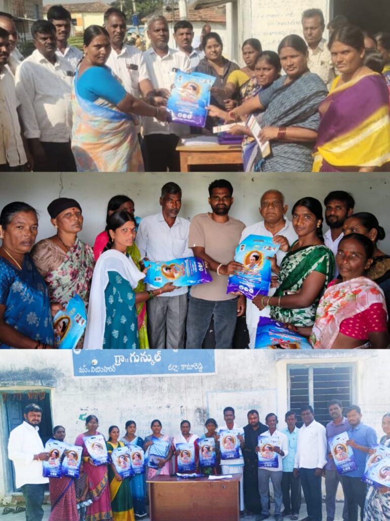 మన ధ్యాస, నిజాంసాగర్ (జుక్కల్) : ఉన్నత లక్ష్యాలతో మహిళల సంక్షేమాన్ని దృష్టిలో పెట్టుకొని అమలులో ఉన్న ఇందిరా మహిళా శక్తి కార్యక్రమం భాగంగా ఉమ్మడి నిజాంసాగర్ మండలంలోని మాగి, తుంకిపల్లి గ్రామాల్లో డ్వాక్రా మహిళా సంఘాల సభ్యులకు పిట్లం వ్యవసాయ మార్కెట్ కమిటీ చైర్మన్ చికోటి మనోజ్ కుమార్,మండల అధ్యక్షులు రవీందర్ రెడ్డి, ఐకెపి ఎపిఎం ప్రసన్నారాణి కలిసి చీరలను అందజేశారు.ఈ సందర్భంగా మార్కెట్ కమిటీ చైర్మన్ మాట్లాడుతూ.. ప్రభుత్వం మహిళల ఆర్థిక, సామాజిక శక్తివంతానికి అనేక సంక్షేమ పథకాలతో ముందుకు సాగుతోందని తెలిపారు. మహిళలకు డ్వాక్రా సంఘాలలో మహిళలకు అన్ని రకాలల్లో మహిళలకు ప్రాధాన్యత కల్పిస్తుందన్నారు.ఈ కార్యక్రమంలో నాయకులు గుర్రపు శ్రీనివాస్, వెంకటేశం, ఆకాష్,తదితరులు ఉన్నారు. గాలిపూర్ లో మండల యువజన కాంగ్రెస్ పార్టీ అధ్యక్షులు సంతోష్ రాథోడ్,గున్కల్