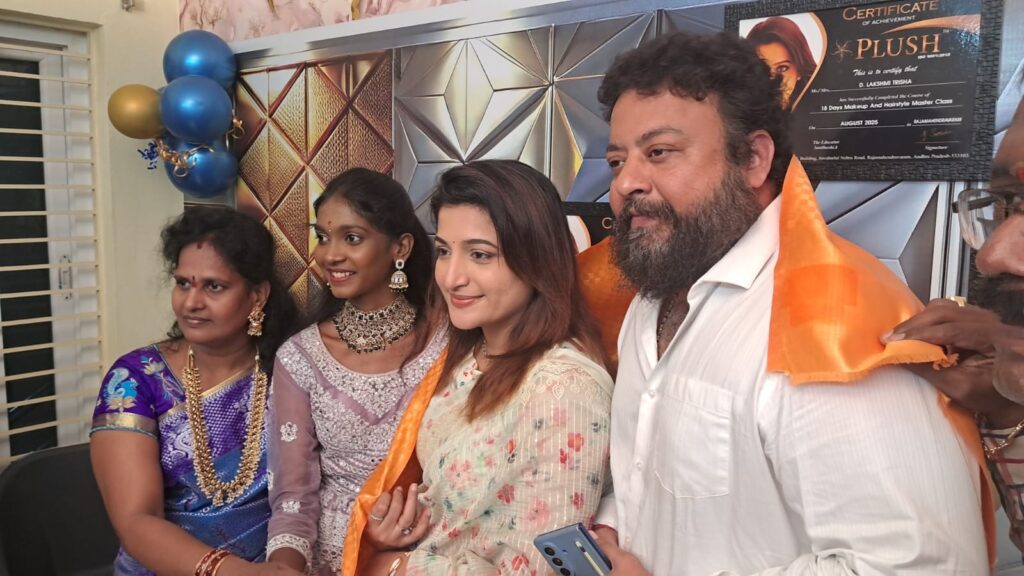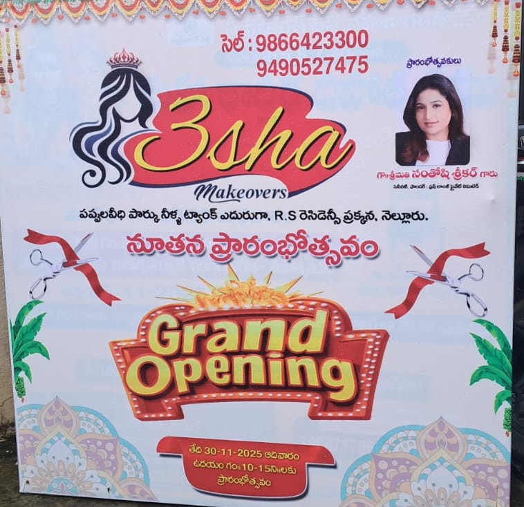 మన ధ్యాస,నెల్లూరు, నవంబర్ 30: నెల్లూరు, లక్ష్మీపురం వాటర్ ట్యాంక్ దగ్గర త్రిష బ్యూటీ పార్లర్ ను ఆదివారం ఉదయం సినీనటి సంతోషి శ్రీకర్ ప్రారంభించినారు. ఈ సందర్భంగా సంతోషి శ్రీకర్ మాట్లాడుతూ….. లక్ష్మీ త్రిష రాజమండ్రి పచ్చి అక్కడే నెలరోజుల పాటు ఉండి ఈ బ్యూటీ కోర్స్ నేర్చుకుని, బ్యూటీ పార్లర్ ప్రారంభించడం నాకు చాలా సంతోషంగా ఉంది అని అన్నారు .పెళ్లి కావలసిన అన్ని సర్వీసెస్ ఒకే చోట లభించడం అభినందనీయం అని అన్నారు.బ్యూటీ పార్లర్ అభివృద్ధి చెందాలని కోరారు. బ్యూటీ పార్లర్ అధినేత లక్ష్మి త్రిష మాట్లాడుతూ….. మా బ్యూటీ పార్లర్ ప్రారంభానికి రావడం మాకు చాలా ఆనందంగా ఉంది అని అన్నారు. మావద్ద బ్రైడల్ మేకప్, ట్రీట్మెంట్, బ్యూటీ సర్వీసెస్, నెయిల్స్ ,ఎక్స్టెన్షన్, వెడ్డింగ్ ఫోటోగ్రఫీ ఈవెంట్ సర్వీసెస్ కలవు అని తెలియజేశారు. ఈ కార్యక్రమంలో బిజెపి నాయకురాలు కందికట్ల రాజేశ్వరి, షాపింగ్ మాల్ డైరెక్టర్ భయ్యా మల్లికా, ఆర్యవైశ్య మహిళా విభాగం అధ్యక్షురాలు పిండి వెంకటలక్ష్మి తదితరులు పాల్గొన్నారు.