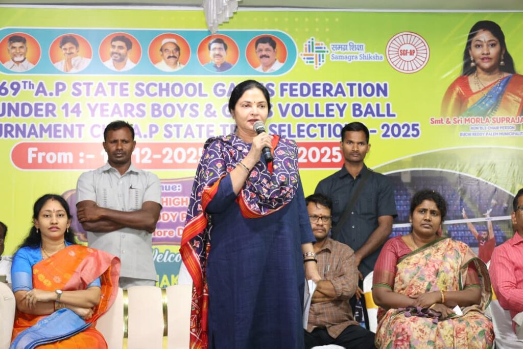 మన ధ్యాస ,బుచ్చిరెడ్డిపాలెం, డిసెంబర్ 16;ఎప్పుడూ నాలుగు గోడల మధ్య చదువులే కాకుండా విద్యార్థులను క్రీడల దిశగా ప్రోత్సహించాలని ఉపాధ్యాయులకు సూచించారు ఎమ్మల్యే వేమిరెడ్డి ప్రశాంతి రెడ్డి . బుచ్చిరెడ్డి పాళెం పట్టణం డి ఎల్ ఎన్ ఆర్ కళాశాల ప్రాంగణంలో నిర్వహించిన 69 వ రాష్ట్ర స్థాయి వాలీబాల్ పోటీలను ఎమ్మెల్యే ప్రశాంతి రెడ్డి ప్రారంభించారు. ఈ సందర్భంగా ఆమె వాలిబాల్ కోర్టులో బంతి ఎగురవేసి క్రీడాకారులను ఉత్సాహపరిచారు. అనంతరం ఎమ్మెల్యే ప్రశాంతి రెడ్డి మాట్లాడుతూ… క్రీడాకారుల మధ్య పరస్పర సహకారం, కష్టపడే స్వభావం వుంటేనే వాలిబాల్ లాంటి క్రీడలో రాణించ గలుగుతారన్నారు. క్రీడలలో గెలుపు ఓటములు సహజమేనని, గెలిచినా, ఓడినా, ప్రయత్నాన్ని మాత్రం ఎప్పటికీ ఆపకూడదన్నారు. నెల్లూరు జిల్లా మీద నమ్మకంతో 12 జిల్లాల నుంచి వాలీబాల్ పోటీలకు పిల్లలను పంపిన వారి తల్లి తండ్రులను ఆమె అభినందించారు. బుచ్చిరెడ్డి పాళెంలో జరుగుతున్న రాష్ట స్థాయి పోటీలలో విజేతలై కడపలో జరిగే నేషనల్స్ లో ఎంపిక కావాలని క్రీడాకారులకు ఆమె ఆశ్వీరచనాలు అందచేశారు. కూటమి ప్రభుత్వం అధికారంలోనికి వచ్చాక విద్యతో పాటు క్రీడలను కూడా ప్రోత్సాహకాలు అందచేస్తుందన్నారు. విద్యా శాఖ మంత్రి లోకేష్ ఆధ్వర్యంలో క్లాస్ కు ఒక టీచర్ విధానం, పాఠశాలలో నాణ్యమైన భోజనం, నాణ్యమైన బ్యాగులు, స్టడీ కిట్ల గురించి వివరించారు. ఇటీవల రాష్ట వ్యాప్తంగా ప్రభుత్వ పాథశాలలో నిర్వహించిన పిటిఎం గురించి ఆమె మాట్లాడుతూ….. విద్యార్థులు, తల్లితండ్రులు మరియు ఉపాధ్యాయుల మధ్య సమన్వయం అవసరమన్న విషయాన్ని మంత్రి లోకేష్ గారు గుర్తించి పేరెంట్స్ టీచర్స్ మీటింగ్స్ గురించి ఆమె తెలిపారు. నెలలో రెండు సార్లు ప్రజా ప్రతినిధులు విద్యాలయాలను సందర్శించి బోధన మరియు విద్యార్థుల స్థితిగతులను పర్వేక్షించాలని కోరారు. క్రీడల అభివృద్ధికి కృషి చేస్తున్న ఎస్జీఎఫ్ అధికారులు, నిర్వాహకులు, కోచ్లు, ఉపాధ్యాయులు మరియు తల్లిదండ్రులకు ఆమె అభినందనలు తెలిపారు. క్రీడా మైదానాలలో సదుపాయాలు మరింత మెరుగు పరిచేందుకు కృషి చేస్తానని ఈ సందర్భంగా ఎమ్మెల్యే ప్రశాంతి రెడ్డి హామీ యిచ్చారు. ఈ కార్యక్రమంలో జిల్లా స్పోర్ట్స్ కమిషనర్ అన్వర్ భాష, సీఐ శ్రీనివాసులురెడ్డి, మున్సిపల్ ఛైర్ పర్సన్ మోర్ల సుప్రజ, టిడిపి సీనియర్ నాయకులు కోడూరు కమలాకర్ రెడ్డి, దువ్వూరు కళ్యాణ్ రెడ్డి, టిడిపి పట్టణ గుత్తా శ్రీనివాసులు, మాజీ పట్టణ అధ్యక్షులు ఎంవి శేషయ్య, మున్సిపల్ కౌన్సిలర్లు, టిడిపి నాయకులు కార్యకర్తలతో పాటు బిజెపి, జనసేన నాయకులు పాల్గొన్నారు.