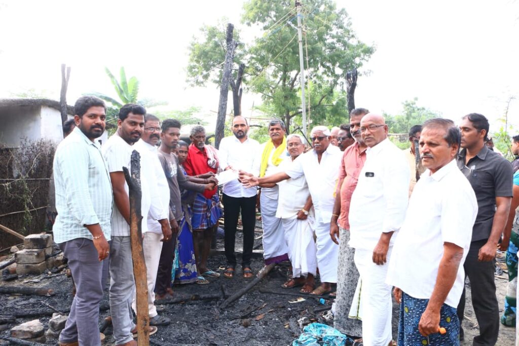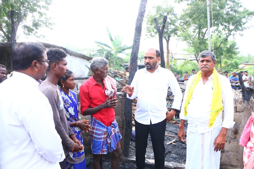 ఇల్లు కాలిపోయి నిరాశ్రయులుగా మిగిలిపోయిన బాధితులకు ఉదయగిరి శాసనసభ్యులు కాకర్ల సురేష్ కొండంత అండనిచ్చారు. వింజమూరు మండలం నల్లగొండ్ల ఎస్టి కాలనీకి చెందిన పోలయ్య ఇల్లు శనివారం సాయంత్రం విద్యుత్ షార్ట్ సర్క్యూట్ తో పూర్తిగా దగ్ధమైంది. విషయం తెలుసుకున్న ఎమ్మెల్యే కాకర్ల సురేష్ ఆదివారం సాయంత్రం వారి నివాసం వద్దకు వెళ్లి బాధితులతో మాట్లాడి వారిని పరామర్శించారు. జరిగిన ప్రమాదం గురించి అడిగి తెలుసుకున్నారు. ధైర్యంగా ఉండాలని టిడిపి పార్టీ మరియు నాయకులు నేను అందరం అండగా ఉంటామని భరోసా కల్పించారు. కాకర్ల చారిటబుల్ ట్రస్టు ద్వారా తక్షణ ఆర్థిక సహాయంగా 25 వేల రూపాయలను అందజేశారు. అదేవిధంగా వారికి ప్రభుత్వం ద్వారా రెండు కాలనీలను మంజూరు చేయించి ఇంటిని నిర్మించి ఇస్తామని తెలిపారు. అత్యవసరంగా ఉండేందుకు తాత్కాలిక ఇంటిని ఏర్పాటు చేయాలని నాయకులకు సూచించారు. అదేవిధంగా కాలనీలో పలు సమస్యలను ఎమ్మెల్యే దృష్టికి తీసుకురాగా వెంటనే అధికారులకు ఫోన్ ద్వారా సమాచారం అందించి తక్షణమే సమస్యలను పరిష్కరించాలని ఆదేశాలు ఇచ్చారు.ఈ కార్యక్రమంలో మండల కన్వీనర్ గూడా నరసారెడ్డి, స్థానిక నాయకులు, అనిపి రెడ్డి తిరుపాలు రెడ్డి, మాజీ సర్పంచ్ పెంచల రెడ్డి, బి సుబ్రహ్మణ్యం, ఓబులరెడ్డి, మురళి, అశోక్, శ్రీనివాసులు రెడ్డి, వెంగళరావు, గూడా నవీన్, సుబ్బరాయుడు, దనిరెడ్డి సురేష్ తదితరులు ఉన్నారు