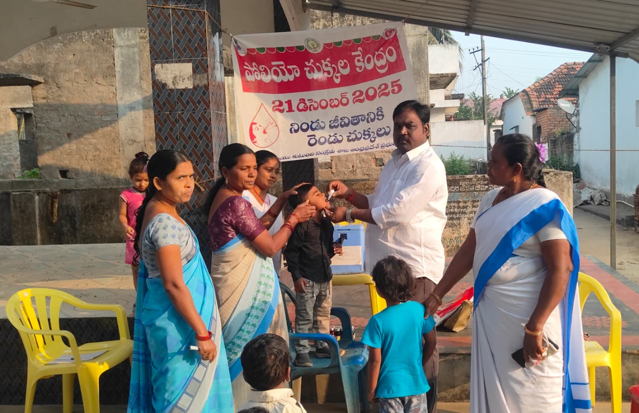 మన ధ్యాస ప్రతినిథి శంఖవరం:నేటి బాలలే రేపటి పౌరులు వీరిని పోలియో మహమ్మారి నుండి రక్షించుకోవాల్సిన బాధ్యత ప్రతి తల్లిదండ్రులపై ఉందని,ఐదేళ్ల లోపు పిల్లలందరికీ తప్పనిసరిగా పోలియో చుక్కలు వేయించాలని వజ్రకూటం మాజీ సర్పంచ్,ప్రత్తిపాడు నియోజకవర్గ తెలుగు యువత అధ్యక్షులు కీర్తి వెంకట సుభాష్ అన్నారు.ఆదివారం వజ్రకూటం గ్రామంలో ఎమ్మెల్యే వరుపుల సత్యప్రభ రాజా ఆదేశాల మేరకు వినాయకుని ఆలయం వద్ద ఏర్పాటుచేసిన పల్స్ పోలియో కార్యక్రమంలో పాల్గొని స్వయంగా చిన్నారులకు పోలియో చుక్కలు అయన చేతుల మీదుగా వేశారు.ఈ సందర్భంగా కీర్తి వెంకట సుభాష్ మాట్లాడుతూ ఒకప్పుడు పోలియో పట్ల సరైన అవగాహన లేకపోవడం వల్ల ఎందరో చిన్నారులు ఈ వ్యాధి బారిన పడి జీవితాంతం అంగవైకల్యంతో నరకయాతన అనుభవించారని, గతంలో పడిన ఆ ఇబ్బందులు పునరావృతం కాకూడదనే ఉద్దేశంతో ప్రభుత్వం ఈ పోలియో నిర్మూలనను ఒక నిరంతర యజ్ఞంలా కొనసాగిస్తున్నాయని అన్నారు.వైద్యారోగ్య సిబ్బంది, ఏ.ఎన్.ఎం. లు,ఆశా కార్యకర్తలు క్షేత్రస్థాయిలో చేస్తున్న కృషి అభినందనీయమని అన్నారు.ఆరోగ్యవంతమైన సమాజం కోసం ప్రతి ఒక్కరూ ఈ అవకాశాన్ని సద్వినియోగం చేసుకోవాలని కోరారు.పోలియో రహిత సమాజమే లక్ష్యంగా సాగుతున్న ఈ పోరాటంలో ప్రజల భాగస్వామ్యం అత్యంత కీలకమని,చిన్నపాటి నిర్లక్ష్యం ఒక బిడ్డ జీవితాన్ని చీకటిమయం చేస్తుందని,అందుకే ప్రతి ఇంట్లో ఉన్న చిన్నారికి చుక్కల మందు వేయించి రక్షణ కవచం కల్పించాలని ఈ సందర్భంగా ఆయన తెలియచేసారు.