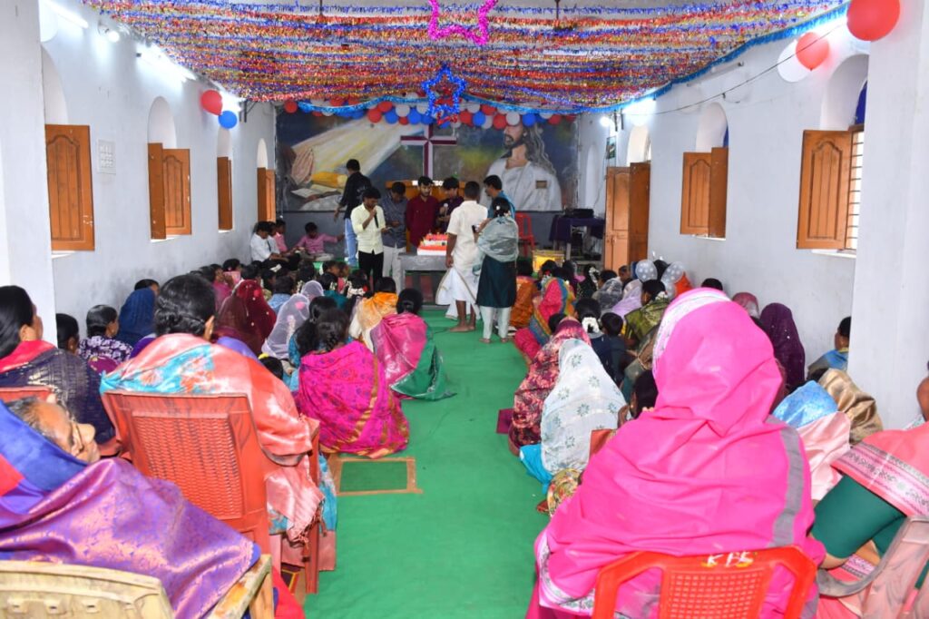 ఈరోజు ఉదయం క్రిస్మస్ సందర్భంగా కొండాపురం మండలం కొమ్మి గ్రామ ఎస్సి కాలని చర్చిలో ఏర్పాటుచేసిన క్రిస్మస్ వేడుకలలో సోదర సోదీమణులతో కలిసి ప్రార్థనలు చేసిన కోడె వెంకటరావు చారిటబుల్ ట్రస్ట్ చైర్మన్ చెరుకూరి వెంకటాద్రి నాయుడు ,చెరుకూరి నవీన్ అనంతరం మహిళలకి చీరలు పంపిణీ చేయడం జరిగింది.అనంతరం ఆయన మాట్లాడుతూ మీ కొరకు రక్షకుడు జన్మించాడు అనే పవిత్ర వాక్యం ద్వారా క్రీస్తు ప్రభువు జన్మ మానవాళికి శాంతి, ప్రేమ ఆశలను అందించి ది అన్నారు. శాంతి మీకు కలుగును గాక అని క్రీస్తు సందేశం ప్రతి ఒక్కరి హృదయంలో నిలిచి సమాజంలో సోదరా భావం కరుణ మానవత్వం పెంచిందని ఆయన అన్నారు. .అనంతరం భారీ కేక్ కట్ చేసి ప్రజలకు క్రిస్మస్ శుభాకాంక్షలు తెలియజేయడం జరిగింది.ఈ కార్యక్రమంలో మాజీ సర్పంచ్ యేన, బంకా,ఆదాము,మాలకొండయ్య,ట్రస్ట్ సభ్యులు వెంకటసుబ్బయ్య , చెరుకూరు శేషయ్య, చంటి,మధు, బ్రహ్మయ్య, గ్రామ ప్రజలు తదితరులు పాల్గొన్నారు.