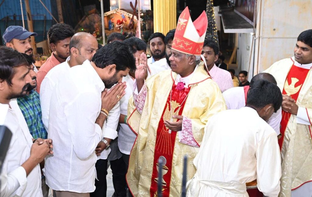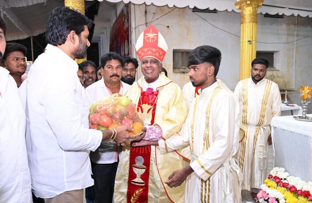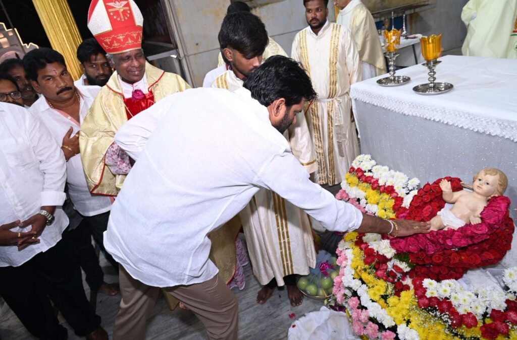 మన ధ్యాస,నెల్లూరు, డిసెంబర్ 25 :నెల్లూరు సంతపేట కేథడ్రల్ చర్చ్ లో బాలయేసు జన్మదిన వేడుకలకు ఎమ్మెల్సీ పర్వతరెడ్డి చంద్రశేఖర్ రెడ్డి హాజరై బాలయేసు పుట్టుక ఘట్టాన్ని..తిలకించి.. బాలయేసుకు ప్రత్యేక ప్రార్థనలు చేశారు.ఈ సందర్బంగా పర్వత రెడ్డి చంద్రశేఖర్ రెడ్డి యేసుక్రీస్తు ప్రభువును దర్శించుకుని క్రీస్తుకు ప్రత్యేక ప్రార్ధనలు నిర్వహించారు.అనంతరం బిషప్ MD ప్రకాశం పర్వతరెడ్డి చంద్రశేఖర్ రెడ్డి కి క్రీస్తు ఆశీర్వచనాలు అందజేశారు. ఈ సందర్భంగా ఎమ్మెల్సీ పర్వత రెడ్డి చంద్రశేఖర్ రెడ్డి మాట్లాడుతూ…….క్రిస్మస్ పండుగ పర్వదినాన్ని పురస్కరించుకొని సంతపేట పెద్ద చర్చిలో ప్రార్థనలకు హాజరవడం ఎంతో సంతోషంగా ఉందని అన్నారు.సమాజం బాగుండాలి సమాజంలో శాంతి, సౌభాగ్యం, వెళ్లి విరియాలన్న ఆకాంక్షతో యేసుప్రభువుకు ప్రార్థనలు చేయడం జరిగిందన్నారు.క్రైస్తవులు అంటే ప్రధానంగా దయ, ప్రేమ, క్షమ, సేవ గుణాలు కలిగి కలిగి ఉంటారని తెలిపారు.ఈ సమాజంలో కూడా ప్రజల మధ్య ప్రేమ, దయా,క్షమ, సేవా గుణాలు అలవరాలని ప్రభువుకు వారు ప్రార్థనలు చేస్తుంటారని అన్నారు.క్రైస్తవులందరూ ఐక్యంగా క్రిస్మస్ పండుగను ఎంతో సంతోషంగా జరుపుకోవాలని ఆకాంక్షించారు.