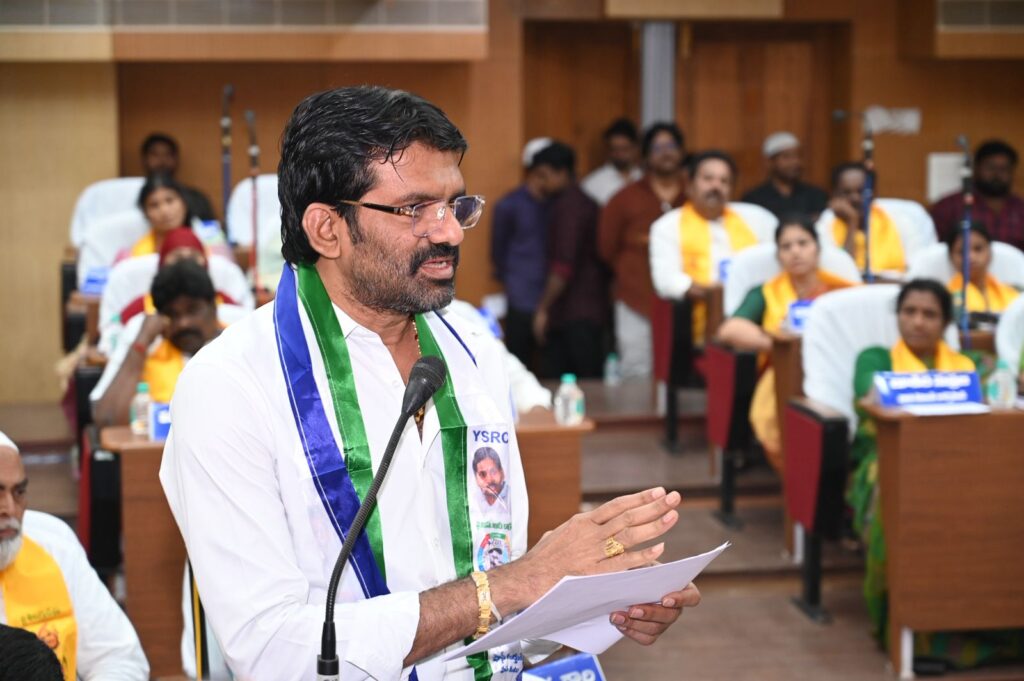 . మన ధ్యాస, నెల్లూరు,డిసెంబర్ 31 : నెల్లూరు నగరపాలక సంస్థ కౌన్సిల్ సమావేశానికి వైఎస్ఆర్సిపి కార్పొరేటర్లతో కలిసి.. ఎక్సె ఆఫీషీయో నెంబర్ హోదాలో.. వైఎస్ఆర్ కాంగ్రెస్ పార్టీ నెల్లూరు సిటీ ఇంచార్జ్ ఎమ్మెల్సీ పర్వత రెడ్డి చంద్రశేఖర్ రెడ్డి కౌన్సిల్ సమావేశానికి హాజరయ్యారు.ఈ సందర్బంగా నెల్లూరులో అధికారులు ప్రోటోకాల్ విషయంలో.. నిబంధనలు పాటించకుండా.. వైయస్సార్ కాంగ్రెస్ పార్టీకి చెందిన కార్పొరేటర్లను.. అభివృద్ధి కార్యక్రమాలు జరిగేటప్పుడు కనీస సమాచారం ఇవ్వడం లేదన్న విషయాన్ని.. పర్వత రెడ్డి చంద్రశేఖర్ రెడ్డి కౌన్సిల్ దృష్టికి తీసుకువెళ్లారు.అలాగే నెల్లూరు వి ఆర్ మున్సిపల్ స్కూల్లో.. అడ్మిషన్ల ప్రక్రియ.. గత విద్యా సంవత్సరంలో ప్రభుత్వ నిబంధనలకు వ్యతిరేకంగా ప్రైవేటు టీం చేత అడ్మిషన్లు ప్రక్రియ నిర్వహించడం జరిగిందని.. రాబోయే విద్యా సంవత్సరంలో కూడా అదే విధానంలో అడ్మిషన్ల ప్రక్రియ నిర్వహించబోతున్నారా అన్న విషయాన్ని కమిషనర్ స్పష్టం చేయాలని అడిగారు.అలాగే ఇటీవల నెల్లూరు నగరపాలక సంస్థ అధికారులు నగర పాలక సంస్థ పరిధిలో.. డ్రైనేజీ కెనాల్స్ పక్కన.. బఫర్ జోన్ కావాలంటూ.. 2500 పేదవారి ఇళ్లకు మార్కింగ్ ఇచ్చి.. ముడున్నర మీటర్ వరకు.. తొలగిస్తామని.. ప్రజలను భయభ్రాంతులకు గురి చేసే .. విధంగా వ్యవహరిస్తున్నారని తెలిపారు.మూడున్నర మీటర్ వరకు ప్రజలు స్థలాలు కోల్పోతే.. అక్కడ ఇల్లు పూర్తిగా తీసేయాల్సిన పరిస్థితి ఏర్పడుతుందని..ఇది సరైన విధానం కాదని.. పేద ప్రజలను దృష్టిలో పెట్టుకొని ఈ విధానాన్ని విరమించుకోవాలని నగరపాలక సంస్థను కోరారు.కౌన్సిల్ నుంచి బయటికి వచ్చిన అనంతరం ఎమ్మెల్సీ పర్వత రెడ్డి చంద్రశేఖర్ రెడ్డి మీడియాతో మాట్లాడుతూ…….కార్పొరేషన్ కౌన్సిల్ సమావేశం అధికార పార్టీ నిర్ణయాలకు మాత్రమే పరిమితమైంది అని తెలిపారు.కౌన్సిల్లో ఎక్కడ ప్రజా సమస్యలు చర్చించేందుకు.. తావు లేకుండా చేశారని మండిపడ్డారు. కౌన్సిల్లో పెట్టిన ఎజెండా లోని ఏ అంశం పై కూడా చర్చ లేకుండా.. నేరుగా నిర్ణయాలు తీసుకునే విధంగా కౌన్సిల్ సమావేశాన్ని నిర్వహిస్తున్నారని అన్నారు.కేవలం కార్పొరేషన్ లో అధికార పార్టీకి.. బలం ఉందన్న ఒకే ఒక కారణంతోనే ఈ విధంమైన.. వ్యవహార శైలితో అధికార పార్టీ అనాలోచిత నిర్ణయాలు చేస్తుందని మండిపడ్డారు.వి ఆర్ హైస్కూల్లో అడ్మిషన్లన్నీ మంత్రి నారాయణకు సంబందించిన ఎన్ టీమ్ కు సంబంధించిన వారే చేపడుతున్నారని అడిగినప్పుడు.. సిఎస్ఆర్ పండుతో దాన్ని అభివృద్ధి చేశామని.. దాటవేసే విధంగా సమాధానం ఇస్తున్నారని అన్నారు.వైఎస్ఆర్ సీపీ ప్రభుత్వంలో నాడు నేడు కింద ఈ రాష్ట్రంలో 43 వేల ప్రభుత్వ పాఠశాలను ఆధునికరించి వత్తులు సమకూర్చడం జరిగిందన్నారు.నాడునేడులో పనులన్న