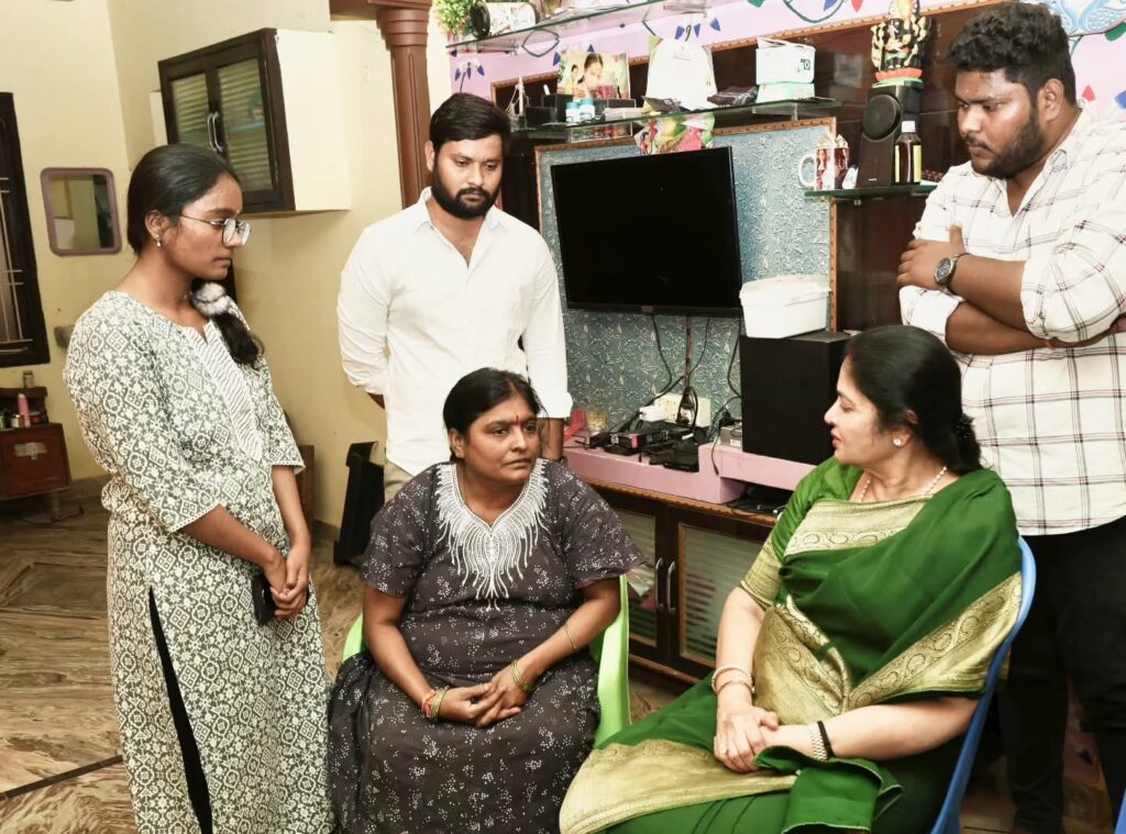 మన ధ్యాస ,కోవూరు,డిసెంబర్ 31 :ఇటీవల మరణించిన ఎన్టీవీ రిపోర్టర్ రాజశేఖర్ అకాల మరణం పట్ల ఎమ్మెల్యే వేమిరెడ్డి ప్రశాంతి రెడ్డి తీవ్ర దిగ్భ్రాంతి వ్యక్తం చేశారు. ఆయన నివాసానికి వెళ్లి రాజశేఖర్ కుటుంబ సభ్యులను పరామర్శించారు. విషాదంలో ఉన్న రాజశేఖర్ భార్య, పిల్లలను ఓదార్చి సానుభూతి వ్యక్తం చేశారు. ఈ కష్ట సమయంలో ప్రభుత్వం మరియు తాను రాజశేఖర్ కుటుంబానికి అండగా ఉంటామని తెలిపారు. ధైర్యంగా ఉండాలని రాజశేఖర్ కుటుంబ సభ్యులకు ఆమె మనోధైర్యం యిచ్చారు.