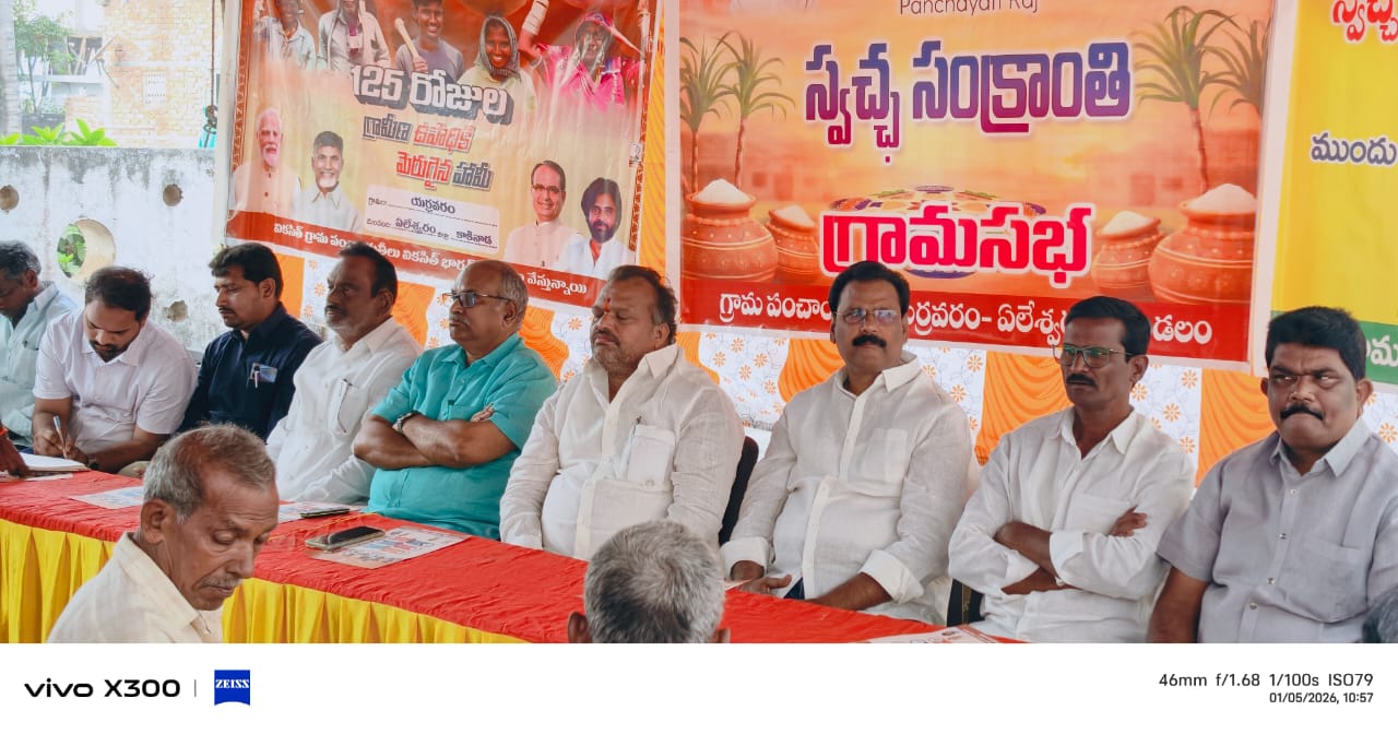 కాకినాడ జిల్లా ఏలేశ్వరం మండలం యర్రవరం గ్రామపంచాయతీ కార్యాలయం వద్ద స్వచ్ఛ సంక్రాంతి పై గ్రామసభ చేపట్టారు.గ్రామ సర్పంచ్ బీసెట్టి అప్పలరాజు అధ్యక్షతన నిర్వహించిన గ్రామ సభకు మండల అభివృద్ధి అధికారి రవికుమార్ వర్మ, ముఖ్యఅతిథిగా హాజరయ్యారు.ఈ సందర్భంగా ఉపాధి హామీ పథకం పై మార్పులను అధికారులు గ్రామ ప్రజలకుఅవగాహన కల్పించారు.మహాత్మా గాంధీ జాతీయ గ్రామీణ ఉపాధి హామీ పథకం పేరును వికసిత్ భారత్ జి రామ్ జి గా మార్చారని తెలిపారు. ఇప్పటి వరకూ 100 రోజుల పని దినాలను 125 రోజులు పెంచారని అన్నారు. వికసిత్ భారత్ జి రామ్ జి కొత్త చట్టం ప్రకారం ఉపాధి కార్మికులకు సకాలంలో వేతనాలు అదేవిధంగా ప్రభుత్వం ప్రణాళికలు చేపట్టిందని అన్నారు. శక్తి వంతమైన నిరుద్యోగ భృతి ఏర్పాటు, గ్రామ సభ ద్వారా వికసిత్ గ్రామ పంచాయతీ ప్రణాళికలు చేపట్టడం జరుగుతుందని తెలిపారు.గ్రామాలలో పారిశుద్ధ్య నిర్మూలనపై ప్రజలకు అవగాహన కల్పించారు. పరిసరాలు పరిశుభ్రంగా ఉంచుకోవాలని ఈ సందర్భంగా అధికారులు ప్రజలకు సూచించారు. ఈ కార్యక్రమంలో పంచాయతీ కార్యదర్శి గోవింద్, నాయకులు,బస్సా ప్రసాద్,నీరుకొండ సత్యనారాయణ,మైరాల కనకారావు,నీరుకొండ అర్జునరావు,గంగిరెడ్ల మణికంఠ,బండారు సూరిబాబు, ఆకుల నాని, తోట హరి,ఫీల్డ్ అసిస్టెంట్ బుద్ధ అశోక్ చక్రవర్తి, గ్రామ ప్రజలు పాల్గొన్నారు