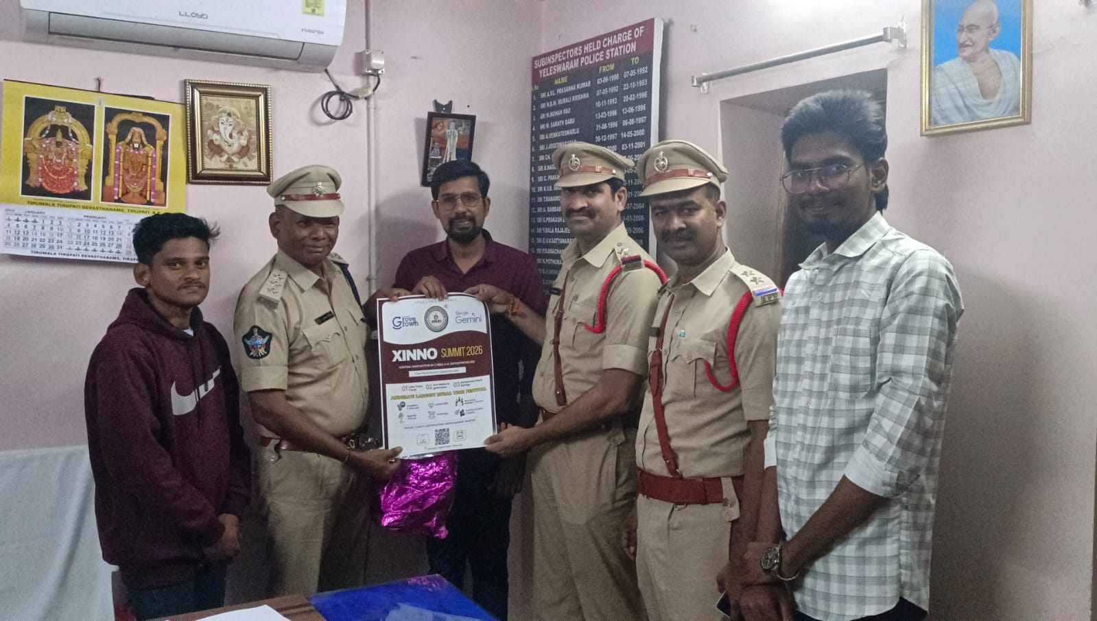 2026కు సంబంధించిన అధికారిక పోస్టర్ను ఈ రోజు ఏలేశ్వరం పోలీస్ స్టేషన్లో పెద్దాపురం డివిజన్ డీఎస్పీ శ్రీహరి రాజు ఆవిష్కరించారు.ఈ కార్యక్రమంలో ప్రతిపాడు సర్కిల్ ఇన్స్పెక్టర్ యేలేశ్వరం సబ్ ఇన్స్పెక్టర్ ఆఫ్ పోలీస్ తదితర పోలీస్ అధికారులు పాల్గొన్నారు.ఈ సందర్భంగా డీఎస్పీ గారు మాట్లాడుతూ,నేటి డిజిటల్ యుగంలో సైబర్ సెక్యూరిటీ మరియు ఆర్టిఫిషియల్ ఇంటెలిజెన్స్ (AI)పై అవగాహన ప్రతి యువకుడికి, విద్యార్థికి అత్యంత అవసరం. గ్రామీణ ప్రాంతాల్లో ఈ తరహా పెద్ద స్థాయి టెక్నాలజీ సమ్మిట్ నిర్వహించడం అభినందనీయం.జిన్నో సమ్మిట్, 2026 యువతకు సరైన దిశానిర్దేశం చేస్తుంది అని తెలిపారు.అలాగే, ఈ సమ్మిట్లో సైబర్ నేరాలపై అవగాహన డిజిటల్ భద్రత,AI వినియోగం,స్టార్టప్ అవకాశాలు వంటి అంశాలు చర్చించబడతాయని పేర్కొన్నారు. ప్రతి యువకుడు, విద్యార్థి ఈ సమ్మిట్లో తప్పనిసరిగా పాల్గొని తమ భవిష్యత్తును సురక్షితంగా, సాంకేతికంగా ముందుకు తీసుకెళ్లాలని సూచించారు.స్పార్క్ ఫౌండేషన్ ఆధ్వర్యంలో నిర్వహించబడుతున్న ఈ జిన్నో సమ్మిట్