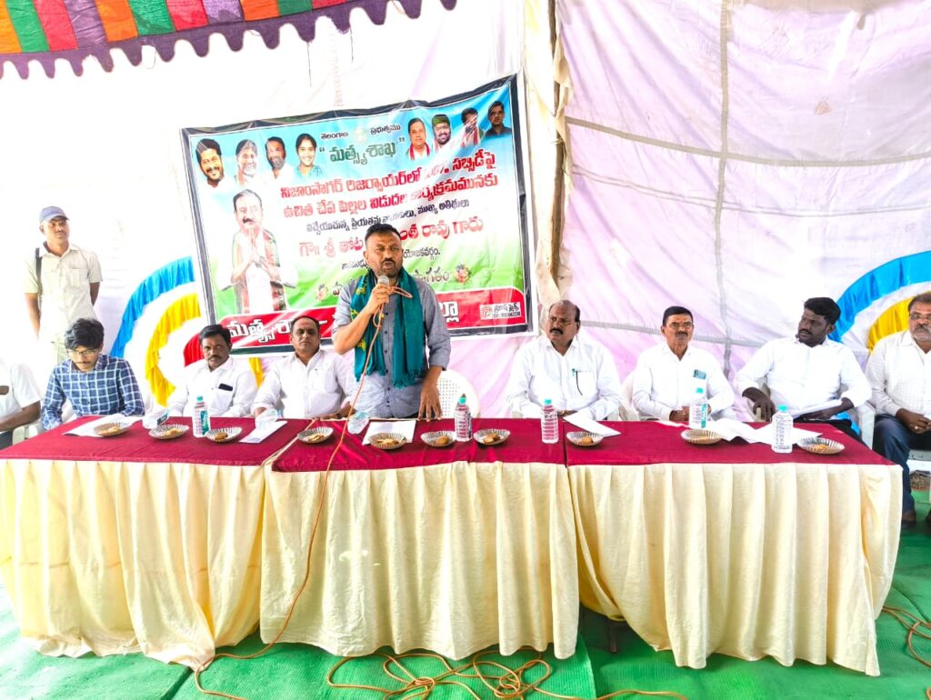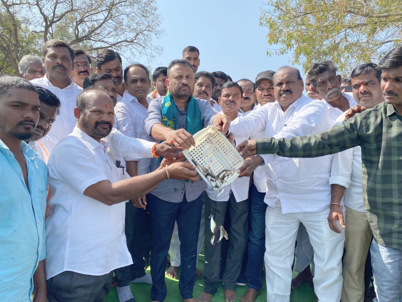 మన ధ్యాస,నిజాంసాగర్,( జుక్కల్ ) నిజాంసాగర్ మండలంలోని నిజాంసాగర్ ప్రాజెక్టు 20 గేట్ల వద్ద 100 % సబ్సిడీపై ఉచిత చేప పిల్లలను జుక్కల్ ఎమ్మెల్యే తోట లక్ష్మీ కాంతారావు, జిల్లా మత్స్య శాఖ అధికారి డోల్ సింగ్,జిల్లా మత్స్య పారిశ్రామిక సహకార సంఘం అధ్యక్షులు గాదం సత్యనారాయణ,జిల్లా ఉపాధ్యక్షులు సాయిలు, పిట్లం వ్యవసాయ మార్కెట్ కమిటీ చైర్మన్ చీకోటి మనోజ్ కుమార్ లతో కలిసి నిజాంసాగర్ ప్రాజెక్టు లో కొబ్బరికాయలు కొట్టి చేప పిల్లలను విడుదల చేశారు. అనంతరం ఏర్పాటుచేసిన సమావేశంలో ఎమ్మెల్యే మాట్లాడుతూ.. మత్స్యకారులను ఆర్థికంగా బలోపేతం చేయడమే ప్రభుత్వ ప్రధాన లక్ష్యమని అన్నారు.చేపల పెంపకం ద్వారా ఉపాధి అవకాశాలు పెంపొందించడంతో పాటు మత్స్యకారుల ఆదాయం పెరిగేలా చర్యలు తీసుకుంటున్నామని అన్నారు.మత్స్యకారుల భవిష్యత్తును దృష్టిలో పెట్టుకుని ఫిషరీస్ యూనివర్సిటీ ఏర్పాటు చేసే దిశగా కృషి చేస్తానని ఎమ్మెల్యే హామీ ఇచ్చారు.చేపల పెంపకం యూనిట్లను ఏర్పాటు చేసి, నియంత్రిత వాతావరణంలో చేపలను పెంచి వాణిజ్య అవసరాల కోసం ఉత్పత్తి చేసే విధంగా ప్రణాళికలు అమలు చేస్తున్నామని అన్నారు.నిజాంసాగర్ రిజర్వాయర్లో మొత్తం 48.18 లక్షల చేప పిల్లలను విడుదల చేయడం జరిగిందన్నారు. జిల్లా మత్స్య అభివృద్ధి పథకం కింద కొమలంచ గ్రామంలో 10 లక్షల రూపాయలతో మత్స్య పారిశ్రామిక సహకార సంఘ భవనము నిర్మించడం జరిగిందన్నారు.2025- 26 సంవత్సరంకుగాను 100% సబ్సిడీపై జుక్కల్ నియోజకవర్గంలో 227 చెరువులలో మొత్తం 129.63 లక్షల చేప పిల్లల విత్తనాలు విడుదల చేయడం లక్ష్యంగా ఉందన్నారు.ఈ కార్యక్రమంలో నీటిపారుదల శాఖ ఈఈ సోలమన్,ఎంపీడీవో శివకృష్ణ, సర్పంచులు సంకు లక్ష్మయ్య, మోహన్,కేతావత్ నారాయణ,వడ్ల బ్రహ్మం,నాయకులు గౌస్ పటేల్,అబ్దుల్ ఖాళీక్, బంగ్లా ప్రవీణ్ కుమార్,మంద బలరాం,మత్స్య శాఖ సిబ్బంది ఎల్లేష్,నవీన్,సురేష్,దశరథ్,తదితరులు ఉన్నారు.ముందుగా ఎమ్మెల్యే తోట లక్ష్మీకాంతరావుకు జిల్లా మత్స్యశాఖ అధికారి డోల్ సింగ్ పుష్పగుచ్చం అందజేసి స్వాగతం పలికారు.