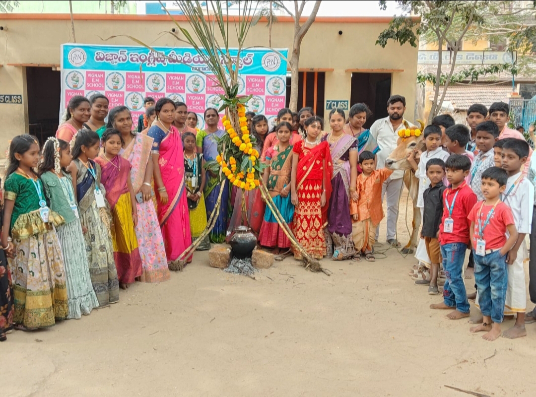 బంగారుపాళ్యం మండల కేంద్రంలోని విజ్ఞాన్ ఇంగ్లీష్ మీడియం స్కూల్ నందు శుక్రవారం ముందస్తు సంక్రాంతి సంబరాలు ఘనంగా నిర్వహించారు.పాఠశాల ఆవరణను రంగవల్లులతో సుందరంగా తీర్చిదిద్ది,పూలతో అలంకరించారు.విద్యార్థులు ఉపాధ్యాయులు పొంగల్లు నిర్వహించి భోగిమంటలు వేశారు.చిన్నారులు హరిదాసు వేషధారణలతో అలరించారు. చిన్నారుల నృత్య ప్రదర్శనలు ఆకట్టుకున్నాయి. ఈ కార్యక్రమంలో విజ్ఞాన్ స్కూల్ కరస్పాండెంట్ ఆర్.ఎన్.జ్యోతినాథ్,ప్రిన్సిపల్ టెండ్రల్,ఇంచార్జ్ హిమగిరి, డైరెక్టర్ ఆర్.ఎన్.రవితేజ, ఉపాధ్యాయులు మరియు విద్యార్థులు పాల్గొన్నారు.