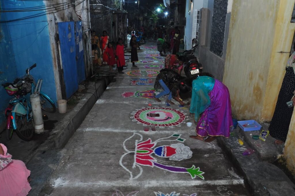 మన ధ్యాస, నెల్లూరు,జనవరి 9 :మహిళల్లోని సృజనాత్మకతను వెలికితీసేందుకు ముగ్గుల పోటీలు చక్కని వేదికగా ఉపయోగపడతాయని మంత్రి నారాయణ సతీమణి పొంగూరు రమాదేవి అన్నారు. హిందూ సంస్కృతిలో సంక్రాంతి విశిష్టమైన పండుగని, ఈ పండుగ సందర్భంగా వేసే ముగ్గుల్లో సృజనాత్మకత దాగి ఉంటుందని చెప్పారు. నెల్లూరు నగరంలోని సంతపేట 49వ డివిజన్ యనమలవారి వీధి లో ప్రతి ఏటా ముగ్గులపోటీలు విజయవంతంగా నిర్వహిస్తూ మహిళలల్లో సంస్కృతి, సంప్రదాయాల పట్ల ఆసక్తి కలిగేలా కృషి చేయడం అభినందనీయమని చెప్పారు. తెలుగువారు ఎక్కడున్నా సంస్కృతికి, సంప్రదాయాలకు పట్టం కడతారని, ఆ స్ఫూర్తిని ఈ పోటీల్లోనూ మహిళలు చాటుకున్నారని ప్రశంసించారు. డివిజన్ కు వచ్చిన రమాదేవికి స్థానికులు ఘనస్వాగతం పలికారు. మహాలక్ష్మమ్మ ఆలయంలో రమాదేవి ప్రత్యేక పూజలు నిర్వహించారు.ఈ సందర్భంగా పొంగురు రమాదేవి మాట్లాడుతూ….. నెల్లూరు ప్రియదర్శిని లయన్స్ క్లబ్ ఆధ్వర్యంలో ముగ్గుల పోటీలు నిర్వహించడం ఆనందంగా ఉందన్నారు.ఈ రంగవల్లుల్ల పోటీలో పెద్ద ఎత్తున మహిళలు పాల్గొన్నారన్నారు.మహిళలు పోటీలు పడివేసిన రంగువల్లులను రమాదేవి తిలకించారు.మొదటి ,ద్వితీయ ,తృతీయ స్థానాల్లో నిలిచిన మహిళలకు బహుమతులు ప్రదానం చేసారు.సంక్రాంతి అంటేనే ముగ్గులతో ప్రారంభమౌతుందన్నారు .ఈ ప్రాంత గుడికి విరాళం ఇచ్చి ప్రారంభోత్సవానికి అప్పట్లో వచ్చానన్నారు.అప్పటి నుంచి ఇక్కడ జరిగే ముగ్గుల పోటీకి ముఖ్యఅతిధిగా హాజరవుతున్నానని. 15 సంవత్సరాలుగా ప్రియదర్శిని లయన్స్ క్లబ్ ముగ్గుల పోటీలు నిర్వహిస్తుందన్నారు.సంక్రాంతి చిహ్నాలతో కూడిన ముగ్గులు అబ్బురపరిచాయని..రంగుల కూర్పు లో మహిళలు ప్రతిభ కనబరిచారని..సంక్రాంతికి ప్రతీ ఒక్కరికీ సకల సౌఖ్యాలు కలగాలని ఆకాంక్షిస్తున్నట్లు రమాదేవి తెలిపారు. ఈ కార్యక్రమంలో రాష్ట్ర వేర్ హౌసింగ్ కార్పొరేషన్ డైరెక్టర్ కపిర శ్రీనివాసులు, మాజీ మున్సిపల్ చైర్ పర్సన్ తాళ్లపాక అనురాధ, డివిజన్ అధ్యక్షుడు ఖాదర్ బాషా, వైస్ ప్రెసెండెంట్ నారా శ్రీనివాసులు నాయుడు, స్థానిక టిడిపి ముఖ్యనేతలు, నాయకులు తదితరులు పాల్గొన్నారు.