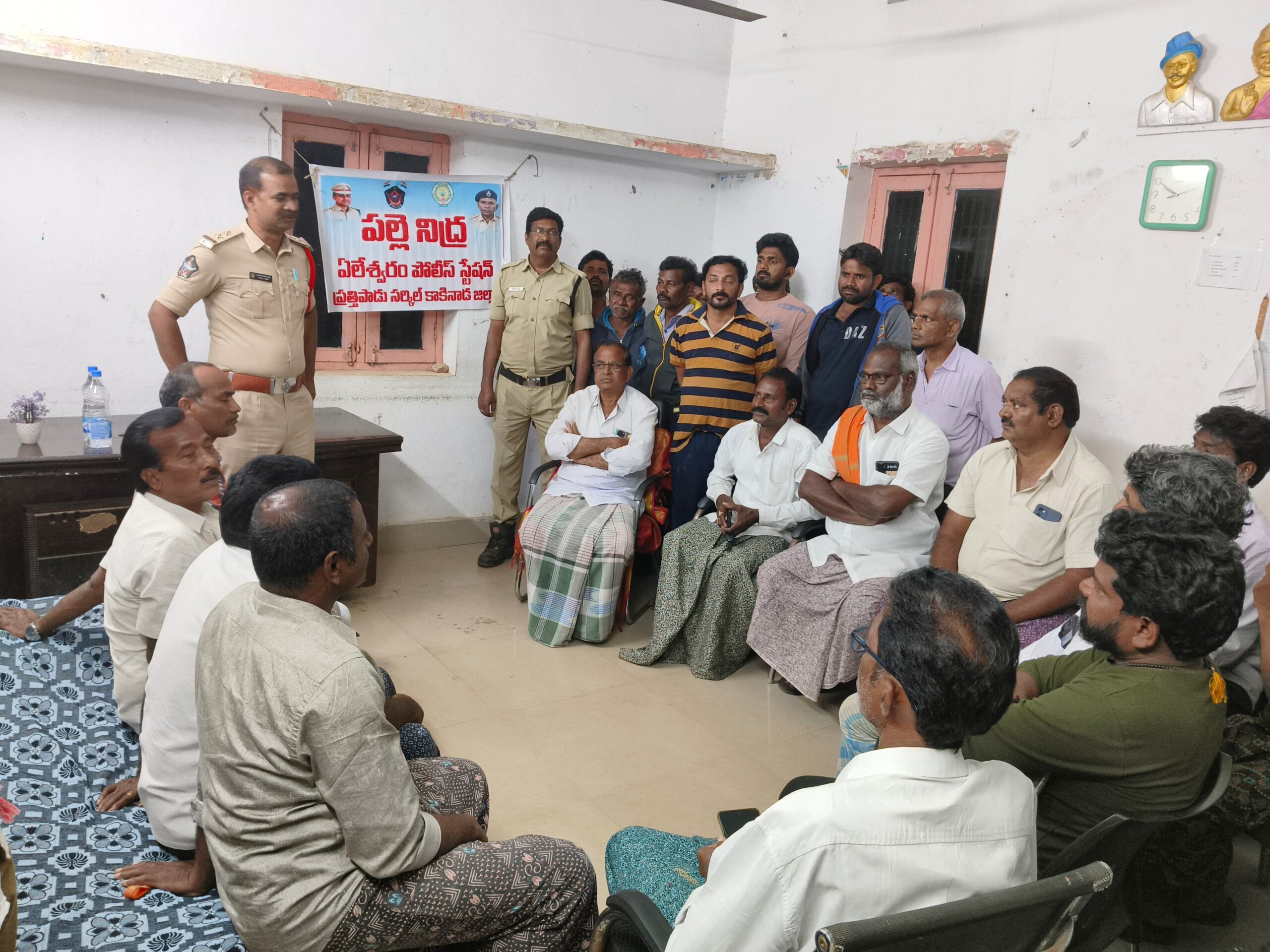 మన ధ్యాస ప్రతినిథి ఏలేశ్వరం: కాకినాడ జిల్లా ఎస్పీ జి. బిందు మాధవ్ ఐపీఎస్ ఆదేశాల మేరకు, మంగళవారం ఏలేశ్వరం మండలం సిరిపురం గ్రామంలో పల్లె నిద్ర కార్యక్రమాన్ని నిర్వహించారు. ఏలేశ్వరం ఎస్ఐ ఎన్ రామలింగేశ్వరరావు ఆధ్వర్యంలో పోలీసులు చేపట్టిన ఈ కార్యక్రమం, గ్రామంలో రాత్రి వేళల్లో పోలీసుల ఉనికిని పెంచి ప్రజల భద్రతను మెరుగుపరచడం లక్ష్యంగా సాగింది. మహిళలు, పిల్లల భద్రత, లైంగిక నేరాలు, డ్రగ్స్, గంజాయి, సైబర్ నేరాలపై అవగాహన కల్పించారు. మద్యం, జూదం, చట్ట విరుద్ధ కార్యకలాపాలపై నిఘా, అనుమానితుల కదలికలపై పరిశీలన చేపట్టారు. గ్రామ శాంతి కమిటీ బలోపేతంపై గ్రామ పెద్దలతో సమావేశం జరిగింది. ఈ కార్యక్రమంలో కూటమి నాయకులు, పోలీసు సిబ్బంది, గ్రామ పెద్దలు పాల్గొన్నారు.