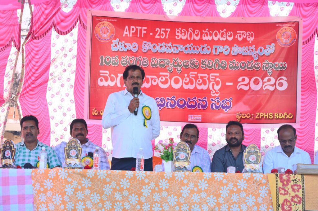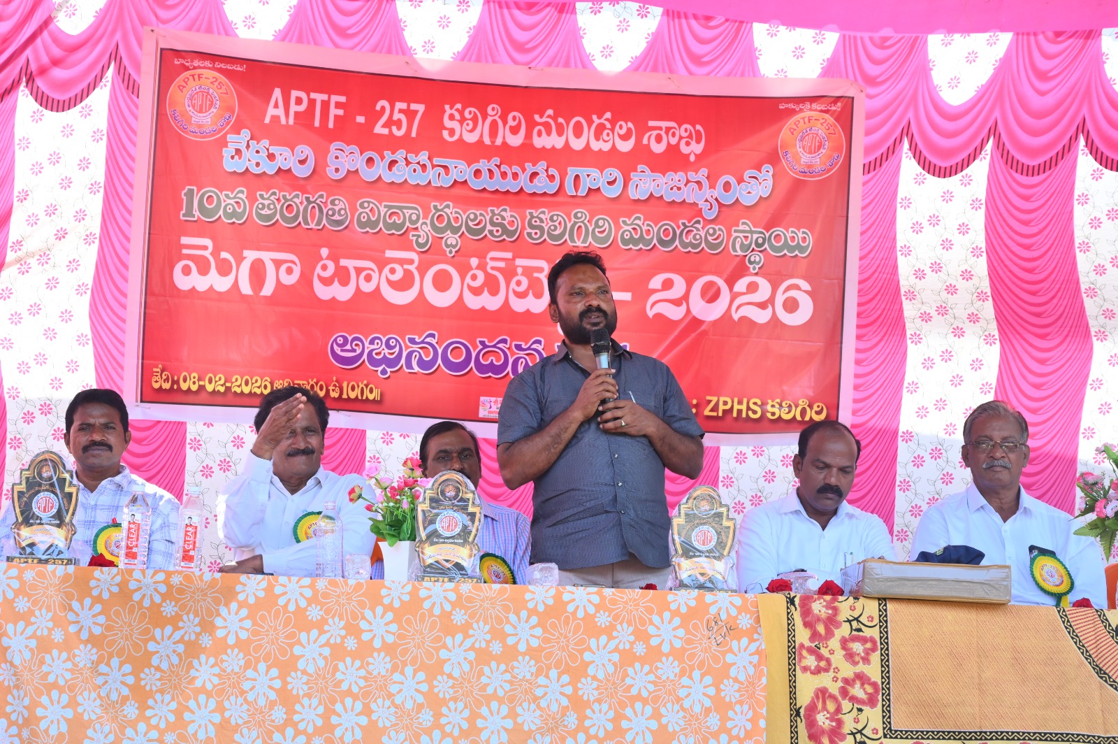 ఏపీ టీ ఎఫ్ -257 కలిగిరి మండల శాఖ నిర్వహించిన మెగా టాలెంట్ టెస్ట్ లో కలిగిరి మండలం పలువురు ఉపాధ్యాయులుకు అవార్డులు, అందుకున్న బహుమతులు వారి వివరాలు 1)బి. అనన్య, ఏపీ మోడల్ స్కూల్, 2) కె. మైథిలి,జడ్ పి హెచ్ ఎస్ సిద్దనకొండూరు 3)కె యశ్వంత్ జడ్ పి హెచ్ ఎస్ సిద్దనకొండూరు, 4)ఎస్. మౌరి కార్తీక్ జడ్ పి హెచ్ ఎస్ తెల్లపాడు, 5)కె. మన్విత జడ్ పి హెచ్ ఎస్ సిద్దనకొండూరు 6) ఎమ్. మవీన్ జడ్ డ్ పి హెచ్ ఎస్ కలిగిరి 7) ఎమ్. నాగ వైష్ణవి ఏపీ మోడల్ స్కూల్ కలిగిరి స్థానాల్లో నిలిచారు. ఈ కార్యక్రమానికి.కలిగిరి ఎమ్ ఈ ఓ జి సురేష్ , ఏపీ మోడల్ స్కూల్ ప్రిన్సిపాల్ శ్రీనివాసులు ,ఇ. రమణయ్య , ఏ. ఎల్. ప్రసాద్ , ఎల్. శ్రీనివాసులు,ఏ. ఎస్. ప్రకాష్ ,పి ప్రకాష్ , రమేష్ , పి. శ్రీను , కె. కొండలరావు, రామ్మోహన్ ,లక్ష్మయ్య , అమీర్ , నాయబ్ ,నరేంద్ర , హజరత్ , సునీల్ ,శివ కళ్యాణి, షాహినా , జి. కృష్ణయ్య, ఎమ్. మహేష్,రత్నం , ఏడుకొండలు, హరి కృష్ణ ,ఎస్ వెంకటేశ్వర్లు సార్, తదితర ఉపాధ్యాయులు పాల్గొన్నారు.ఈ కార్యక్రమం విజయవంతం చేసిన మిత్రులందరికీ మండల శాఖ తరుపున ధన్యవాదములు తెలుపినారు.అనంతరం విజేతలకు అభినందనలు తెలియజేశారు.