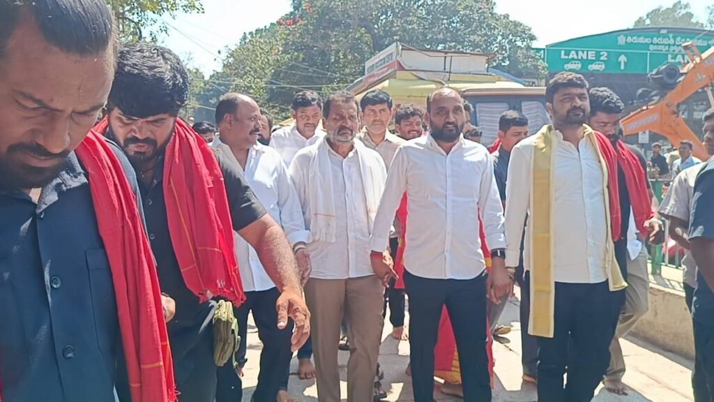 కలియుగ దైవం శ్రీ వెంకటేశ్వర స్వామి దర్శనార్థం బండ్ల గణేష్ తలపెట్టిన పాదయాత్ర సోమవారం తిరుమలకు చేరుకుంది. ఈ పాదయాత్రలో ఉదయగిరి శాసనసభ్యులు కాకర్ల సురేష్ పాల్గొన్నారు. బండ్ల గణేష్ గారిని ముందుగా శాలువాతో ఘనంగా సన్మానించారు.అనంతరం ఆయన పాదయాత్రకు సంఘీభావంగా ఆయనతో కలిసి నడిచారు.బండ్ల గణేష్ పాదయాత్ర విజయవంతంగా పూర్తి కావడంతో సంతోషం వ్యక్తం చేశారు.శ్రీ కలియుగ దైవం శ్రీ వెంకటేశ్వర స్వామి ఆశీస్సులు ఎల్లవేళలా ఉండాలని, ఆశీర్వదించారు.అనంతరం ఎమ్మెల్యే కాకర్ల సురేష్ శ్రీవారిని దర్శించుకున్నారు.ఈ కార్యక్రమంలో సహచర ఎమ్మెల్యేలు,టిడిపి నేతలు, అభిమానులు తదితరులు ఉన్నారు.