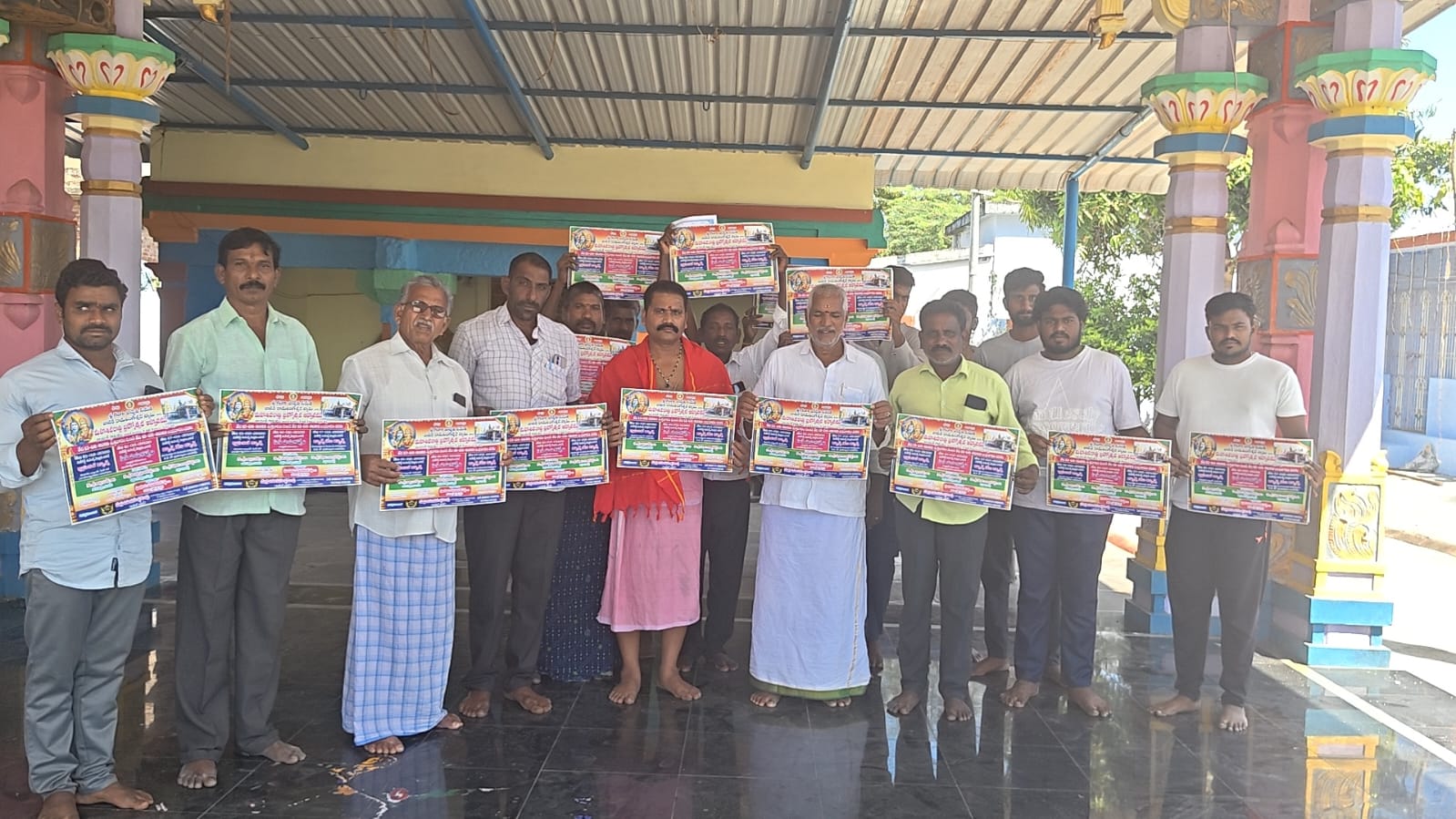 జలదంకి మండలం లోని రాబోయే శివరాత్రి పర్వదినాన్ని పురస్కరించుకొని శివరాత్రి ఉత్సవాల పాంప్లెట్లను కార్యక్రమ అధ్యక్షులు పులుగుంట మధుమోహన్ రెడ్డి, ఆలయ ప్రధాన అర్చకులు కుందుర్తి సతీష్ శర్మ ఆధ్వర్యంలో ఘనంగా ఆవిష్కరించారు.భక్తుల భారీ రద్దని దృష్టిలో ఉంచుకొని నిర్వాహకులు విస్తృత ఏర్పాట్లు చేస్తున్నట్లు వారు తెలిపారు..శివరాత్రి సందర్భంగా స్వామి వారి ఊరేగింపు.అభిషేకాలు,,రుద్ర పట్టణాలు,,అన్నదాన కార్యక్రమాలు,, సాంస్కృతిక కార్యక్రమాలు నిర్వహిస్తున్నట్లు కమిటీ సభ్యులు తెలిపారు.చుట్టుపక్కల ఉన్న పరిసర ప్రాంతాల నుంచి పెద్ద ఎత్తున భక్తులు తరలివచ్చే అవకాశం ఉన్నందున భక్తులకు ఎలాంటి అసౌకర్యం కలగకుండా అన్ని చర్యలు తీసుకుంటున్నామని దేవస్థానం కమిటీ స్పష్టం చేశారు.ఈసారి శివరాత్రిని మరింత వైభవంగా నిర్వహించేందుకు అన్ని ఏర్పాట్లు చేస్తున్నామని భక్తులందరూ పెద్ద సంఖ్యలో పాల్గొనాలని ఇది మన గ్రామానికి ఆధ్యాత్మిక పండుగ ప్రతి సంవత్సరం కంటే ఈసారి ఎక్కువ కార్యక్రమాలు నిర్వహిస్తున్నామని వారు తెలిపారు.