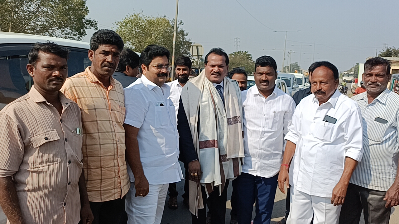 మన ధ్యాస ప్రతినిథి ఏలేశ్వరం:జై భీమ్ భారత్ పార్టీ అధ్యక్షులు జడ శ్రవణ్ కుమార్ ను ఆ పార్టీ ఉపాధ్యక్షులు దాడిశెట్టి వీరబాబు ఘన స్వాగతం పలికారు. మాజీమంత్రి వైసిపి పొలిటికల్ అడ్వైజరీ కమిటీ సభ్యులు ముద్రగడ పద్మనాభం నివాసం వద్దకు బయలుదేరిన జడ శ్రావణ్ కుమార్ ను యర్రవరంవద్ద జాతీయ రహదారిపై దాడిశెట్టి వీరబాబు పార్టీ శ్రేణులతో సాలువ కప్పి స్వాగతం పలికారు. అనంతరం ప్రత్తిపాడు లో అంబేద్కర్ విగ్రహానికి పూలమాలవేసి జోహార్ అంబేద్కర్ అంటూ నినాదాలు చేపట్టారు. శ్రావణ్ కుమార్ వెంట భారీ కాన్వాయ్ తో ముద్రగడ నివాసానికి బయలుదేరి వెళ్లారు.