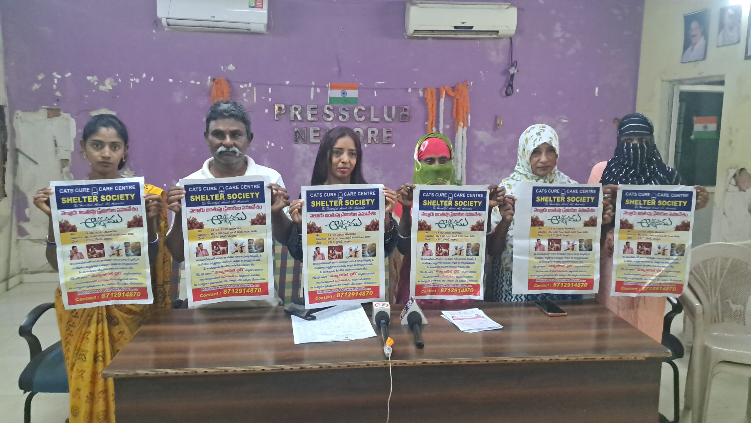 మన ధ్యాస , నెల్లూరు, ఫిబ్రవరి 13 : మూగ జీవాలను ప్రేమించండి, వాటిని కాపాడండి అని నెల్లూరు షెల్టర్ సొసైటీ ఫౌండర్ మహమ్మద్ నగ్మా సోనా పిలుపునిచ్చారు. నెల్లూరు ప్రెస్ క్లబ్ లో శుక్రవారం ఉదయం మీడియా సమావేశంలో ఆమె మాట్లాడుతూ…………గత ఏడు సంవత్సరాలుగా మూగజీవాలను రక్షిస్తూ….వాటికి ఆహారం మరియు శస్త్ర చికిత్స అవసరమైతే చేస్తున్నాను అని తెలిపారు. 2024 సంవత్సరంలో సంస్థని రిజిస్టర్ చేసుకున్నాము. ఈ సంస్థ ద్వారా కుక్కలు, పిల్లలు మొదలు జీవాలను స్నేహభావంతో ఆదుకొని వాటిని పోషిస్తూ వాటికి అవసరమైతే శస్త్ర చికిత్స లాంటి ఆరోగ్య సమస్యలు సంభవిస్తూ ఉంటే చేస్తూ కాపాడుతున్నాము అని తెలిపారు.మూగజీవాలను మా కుటుంబ సభ్యు లాగానే భావిస్తున్నాము. సృష్టిలో మనుషులు లాగే వాటికి జీవించే హక్కు ఉంది అని తెలిపారు.మూగజీవాల కోసం నేను బిఎస్సి కంప్యూటర్ చేసీ,ఐసిఐసిఐ కంపెనీలో 11 సంవత్సరాలు జాబ్ చేసి మానివేసి, 2015 నుండి ఈ కార్యక్రమంలో భాగంగా పనిచేస్తున్నాను. నష్టం మరియు కష్టం మానసిక శోభ ఉన్నప్పటికీ నా లక్ష్యం కోసం మూగజీవాల పట్ల ప్రేమ పెరిగిందా గాని తగ్గలేదు తగ్గదు అని అన్నారు.మనమంతా ఒక నిమిషం ఆలోచిద్దాం.. మూగ జీవాలు పట్ల మీరు కూడా దయ, జాలి కలిగి ఉండండి…హింస మరియు బాధ కలిగించవద్దు అని అన్నారు. నేను ముందుకు వచ్చాను మీరు కూడా ఒక అడుగు రండి, సమాజానికి తెలిసే విధంగా నెల్లూరు జంతువుల ప్రేమికుల సమావేశం అను ప్రోగ్రాను నెల్లూరు వి ఆర్ సి గ్రౌండ్ లో ఫిబ్రవరి 14 వ తేదీ శనివారం సాయంత్రం నాలుగు గంటల నుండి రాత్రి 8 గంటల వరకు నిర్వహిస్తున్నాము అని తెలిపారు.గ్రూప్ డిస్కషన్స్ డౌట్స్ జంతు ప్రేమికులకు గేమ్ (మ్యూజికల్ చైర్స్ ) నిర్వహిస్తున్నాము. గెలుపొందిన వారికి బహుమతులు,అతిథి సత్కారం చేయబడును అని తెలిపారు. కనుక జంతు ప్రేమికులు మా ఈ ప్రోగ్రామ్కు రావలసిందిగా కోరుచున్నాము అని తెలియజేశారు. ఇతర వివరాలు కోసం 87 12914870 ఫోన్ నెంబర్ కు సంప్రదించగలరు.