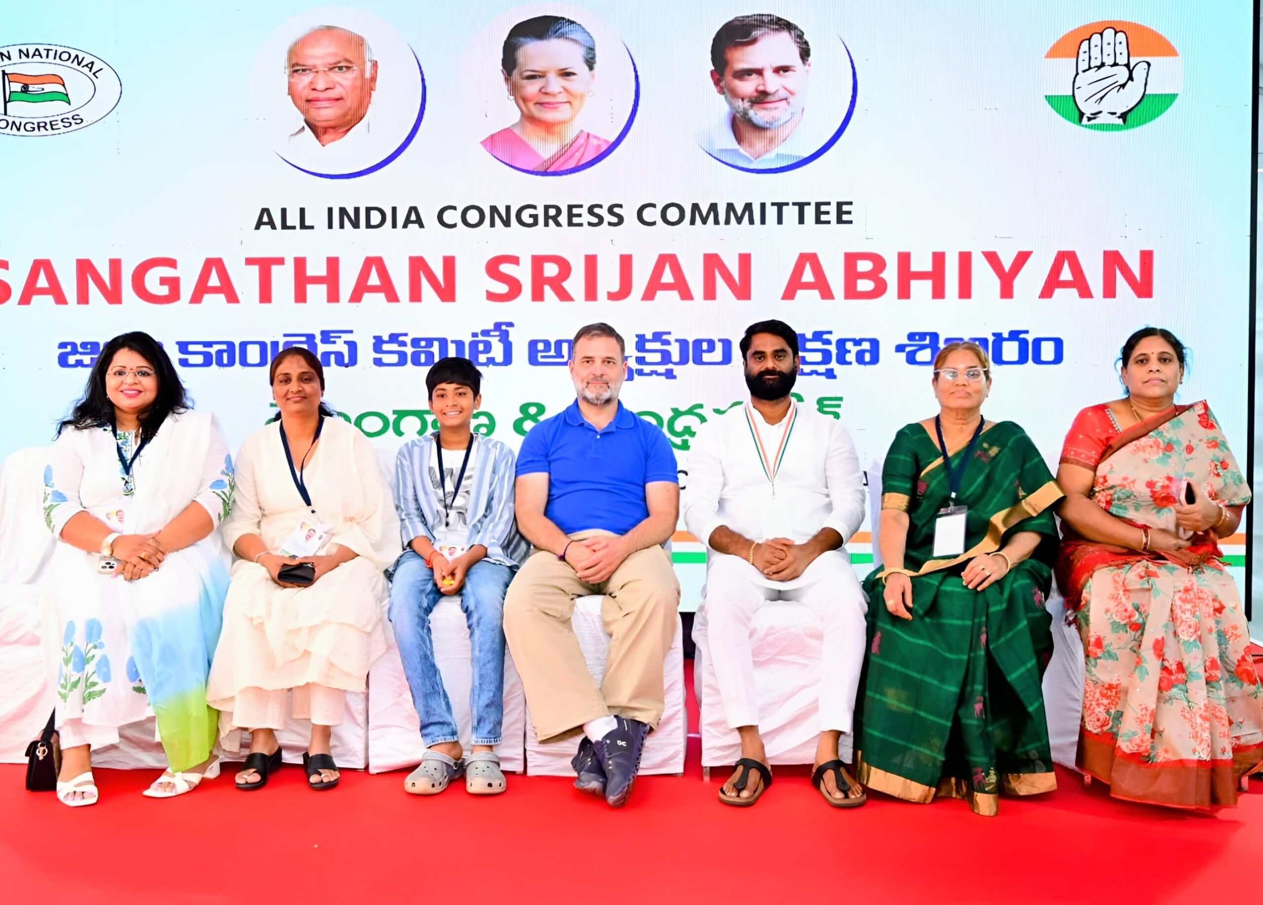 మన ధ్యాస,నిజాంసాగర్,(జుక్కల్ ) తెలంగాణ,ఆంధ్రప్రదేశ్ కాంగ్రెస్ పార్టీ జిల్లా అధ్యక్షుల శిక్షణ శిబిరం ను ఫిబ్రవరి 21 నుండి మార్చి 2 వరకు వికారాబాద్ లోని హరిత వ్యాలీలో ఏర్పాటు చేయడం జరిగినది. సోమవారం 2 వ తేదీ ముగింపు కార్యక్రమానికి పార్లమెంటు ప్రతిపక్ష నాయకుడు,కాంగ్రెస్ పార్టీ నాయకులు రాహుల్ గాంధీ రావడం జరిగింది.వారిని కామారెడ్డి జిల్లా కాంగ్రెస్ పార్టీ అధ్యక్షులు ఏలే మల్లికార్జున్ కుటుంబ సమేతంగా కలిసినారు.ఈ సందర్భంగా రాహుల్ గాంధీ అధ్యక్షులను ఉద్దేశించి మాట్లాడుతూ.. డిసిసి అధ్యక్ష పదవి అనేది ఒక బాధ్యతాయుతమైన పదవి అని ప్రజలకు ప్రభుత్వానికి వారధిగా ఉండుకుంటూ అనునిత్యం ప్రజలకై ప్రజా సంక్షేమానికై ప్రజా సమస్యలు తీర్చడంలో ముందు ఉంటూ అభివృద్ధికి దోహదపడాలని అదేవిధంగా ఎస్సీ, ఎస్టీ, బీసీ, మైనార్టీ వర్గాలకు అండగా నిలవాలని రాజ్యాంగ వ్యతిరేక కార్యకలాపాలను పాటు పడే వారిని అనునిత్యం ఖండించాలని గాంధీ మార్గంలో నడుచుకుంటూ ప్రజలకు మేలు చేసే విధంగా అధ్యక్షులు ఉండాలని ఆశిస్తున్నాను అని అన్నారు. ముఖ్యంగా కాంగ్రెస్ పార్టీ ప్రతి కార్యకర్తకు అండగా నిలబడాలని వారితో ప్రేమగా మేలగాలని మహిళలను గౌరవించుకుంటూ వారి అభివృద్ధికి పాటుపడాలని సూచన చేయడం జరిగింది. ఈ కార్యక్రమంలో తెలంగాణ ముఖ్యమంత్రి రేవంత్ రెడ్డి, కాంగ్రెస్ పార్టీ అధ్యక్షులు మహేష్ కుమార్ గౌడ్, తెలంగాణ రాష్ట్ర ఉపముఖ్యమంత్రి భట్టి విక్రమార్క, ఆంధ్రప్రదేశ్ కాంగ్రెస్ పార్టీ అధ్యక్షులు షర్మిల, తెలంగాణ రాష్ట్ర కాంగ్రెస్ పార్టీ ఇంచార్జి మీనాక్షి నటరాజన్, ఆంధ్రప్రదేశ్ ఇంచార్జి మాణిక్యం ఠాగూర్, మరియు విశ్వనాథన్, సచిన్ సావంత్, ఆంధ్రప్రదేశ్ ఇంచార్జిలు పలక్ వర్మ , తెలంగాణ ఆంధ్ర ప్రదేశ్ డిసిసి అధ్యక్షులు పాల్గొన్నారు.