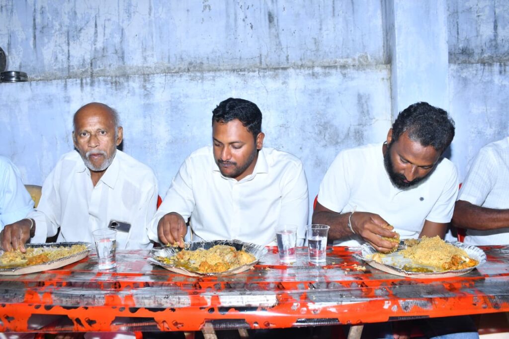 ఆదివారం రాత్రి ,ఉదయగిరి నియోజకవర్గం కొండాపురం మండలం కొమ్మి గ్రామంలో ముస్లిం సోదర సోదరీమణులతో కలిసి కోడె వెంకటరావు చారిటబుల్ ట్రస్ట్ ఆధ్వర్యంలో ఘనంగా ఇఫ్తార్ విందు కార్యక్రమాన్ని నిర్వహించారు.ముందుగా ట్రస్ట్ చైర్మన్ చెరుకూరి వెంకటాద్రి నాయుడు ని, చెరుకూరి నవీన్ ని ముస్లిం సోదరులు సాదర స్వాగతం పలికారు.అనంతరం మసీదులో నవాజ్ చేసి… ముస్లిం సోదరులకు రంజాన్ మాస శుభాకాంక్షలు తెలియజేశారు.ఈ కార్యక్రమంలో ట్రస్టు సభ్యులు చెరుకూరి నవీన్ ప్రత్యేక ఆకర్షణగా నిలిచారు, ముస్లిం సోదర సోదరీమణులకు స్వయంగా ఇఫ్తార్ విందులో ఆయన వడ్డించారు.అనంతరం సోదర సోదరీమణులతో కలిసి ఇఫ్తార్ విందులో భోజనం చేశారు. ట్రస్ట్ చైర్మన్ వెంకటాద్రి నాయుడు మాట్లాడుతూ ముస్లిం సోదరులకు అన్ని విధాలుగా ట్రస్ట్ అండగా ఉంటుందని తెలియజేశారు.ప్రతి ఏటా సంక్రాంతికి ముస్లిం సోదరులకు పిండి వంటలను పంపిణీ చేస్తున్న కార్యక్రమాన్ని గుర్తు చేసుకున్నారు. ఈ కార్యక్రమంలో ముస్లిం మైనారిటీ నాయకులు, షేక్ ఖాసీం, చాన్ భాషా, టీడీపీ నాయుకులు దేవినేని వెంకటసుబ్బయ్య, చెరుకూరు శేషయ్య, ఉంటా హాజరత్,చెరుకూరి వెంకయ్య, మేదరమెట్ల కొండపనాయుడు, మాజీ సర్పంచ్ గుంటూరి యోనా, చెరుకూరి సుబ్బారావు ట్రస్ట్ సభ్యులు అంబటి సురేష్, దేవినేని చౌదరి తదితరులు పాల్గొన్నారు.