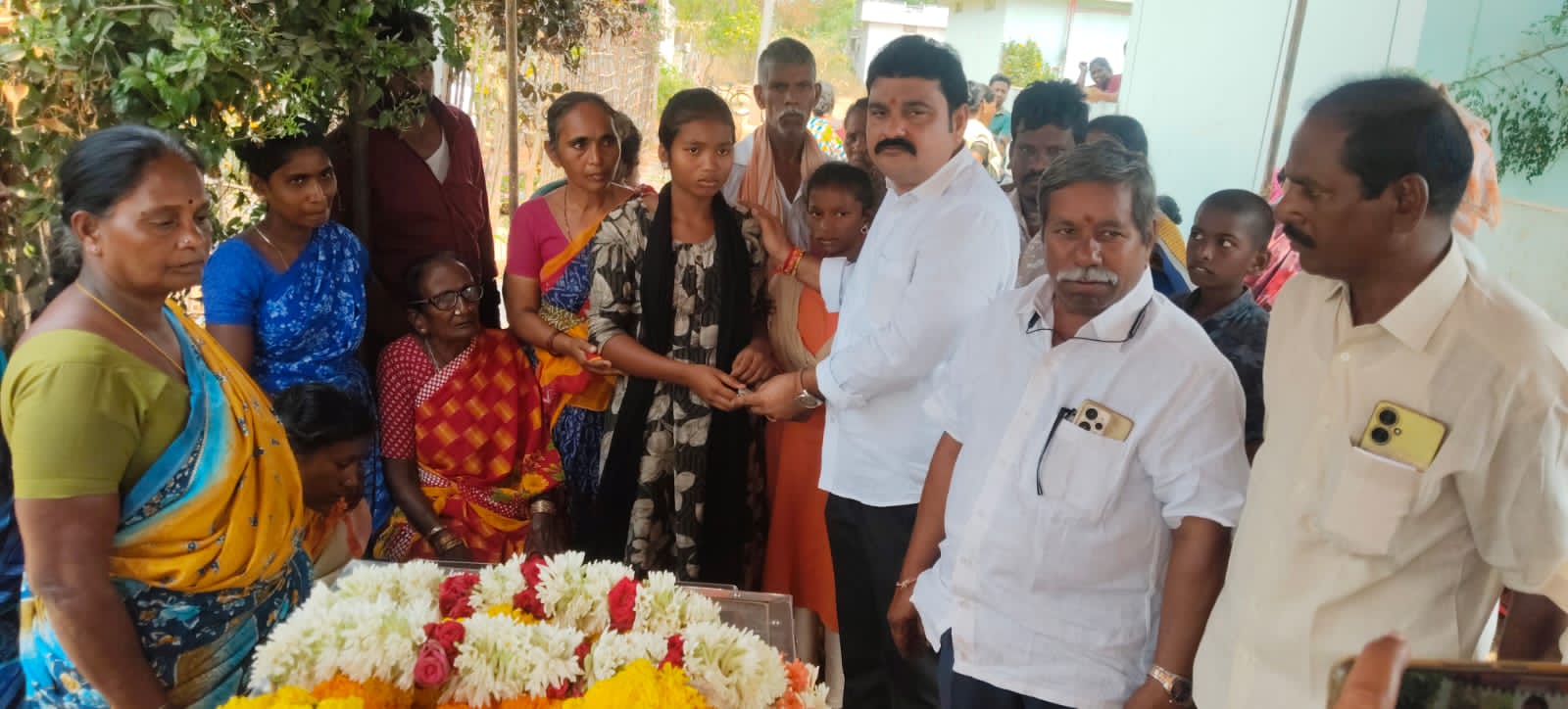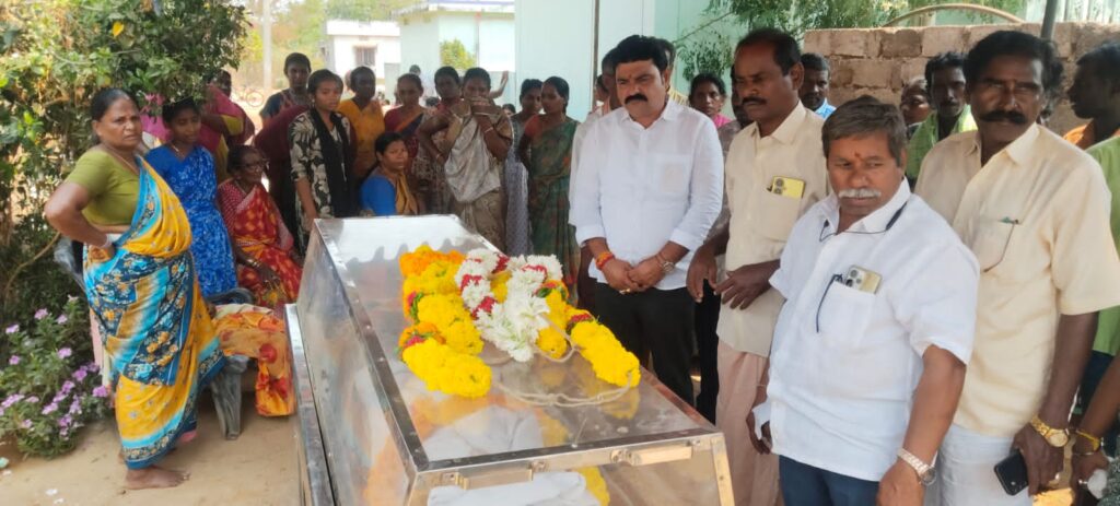 కలిగిరి మండలం నాగసముద్రం ఎస్సీ కాలనీలో విషాద వాతావరణం నెలకొంది.మార్కాపురం సమీపంలో జరిగిన ట్రావెల్స్ బస్సు ప్రమాదంలో మృతి చెందిన ఆత్మకూరు చిన్నయ్య మృతదేహాన్ని కుటుంబ సభ్యులు స్వగ్రామానికి తీసుకువచ్చారు.మృతదేహాన్ని చూసిన వెంటనే కుమార్తెలు, కుటుంబ సభ్యులు, స్థానికులు బోరున విలపించారు. ఆ దృశ్యం అక్కడున్న ప్రతి ఒక్కరినీ కలచివేసింది.ఈ సందర్భంగా టిడిపి మండల కన్వీనర్ పూసాల వెంగపనాయుడు, నాయకులు బిజ్జం కృష్ణారెడ్డి, సిహెచ్. తాతయ్య, వై. రమణారెడ్డి తదితరులు మృతదేహానికి నివాళులు అర్పించారు.అనంతరం కాకర్ల సురేష్ ఆదేశాల మేరకు కాకర్ల చారిటబుల్ ట్రస్ట్ తరఫున తక్షణ మట్టి ఖర్చుల కోసం ఆర్థిక సాయం అందజేశారు.మృతుని కుటుంబానికి అన్ని విధాలుగా అండగా ఉంటామని, పిల్లల చదువులు మరియు భవిష్యత్తు విషయంలో ఎలాంటి ఇబ్బందులు రాకుండా సహాయం చేస్తామని హామీ ఇచ్చారు.